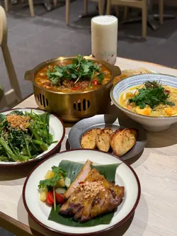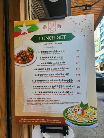 #MC带你去佐敦 📢价钱地址请看内文.泰国菜吃得多✨那......缅甸菜你又吃过吗⁉️.这间是『泰简 𝙃𝙏𝙄𝙆𝙀 𝙀𝘼𝙎𝙔』紧邻佐敦地铁站餐厅由缅甸人主理 主打缅泰 𝗙𝘂𝘀𝗶𝗼𝗻 融和菜~可以吃到香港很少见的缅甸菜!.店内装潢使用藤编家俱、绿植盆栽🍀营造出雨林松弛感 每个角落都热带风情🥰.─── ᴍᴇᴀʟ ───🍜 #招牌缅甸海鲜鱼汤粉汤底呈枯黄色色泽 每日新鲜熬制✨以鲜鱼熬制汤底 并将鱼肉磨成蓉混入汤粉中鲜味十足无腥味!而且调味清淡又无味精 可以直接喝👍🏻还有鱼露及辣椒碎 可以依自己喜好加入搭配鱿鱼🦑、大虾🍤、白鱼蛋、水煮蛋🥚及幼滑米粉😋加上即叫即炸马豆饼 薄脆香口有口感这个传统小吃绝对不能错过‼️.🍛 #缅甸咖喱牛肋条浓郁咖喱香气扑鼻 咸香微辣😍牛肋条超软嫩 牛筋弹牙滑顺😋搭配金黄酥脆蒜蓉包 蘸上满满咖喱汁~香料味很浓厚 让人忍不住一口接一口><.🥓 #炭烧猪颈肉猪颈肉软嫩弹牙不干柴🤤外皮边位微微焦香每一口都好幸福满足💖.🥗 #炒通菜泰式炒通菜香气十足!夹杂著镬气与油香🔥通菜油润有光泽✨入口非常脆嫩又无渣蒜辣香味刚刚好👍🏻.🍨 #泡鲁达经典缅甸北部甜品!上面撒上椰丝 甜中带有椰香🤤入面有班兰粉条 口感好特别值得一试‼️.── ᴛʜᴏᴜɢʜᴛꜱ ──整体餐点我觉得都算挺有水准的爱缅甸料理的可以来吃🙌🏻.─── ᴘʀɪᴄᴇ ───﹅ 招牌缅甸海鲜鱼汤粉|𝗛𝗞$𝟏𝟐𝟖 (★推)﹅ 缅甸咖喱牛肋条|𝗛𝗞$𝟏𝟓𝟖 (★推)﹅ 炭烧猪颈肉|𝗛𝗞$𝟔𝟖﹅ 炒通菜|𝗛𝗞$𝟕𝟖﹅ 泡鲁达|𝗛𝗞$𝟓𝟖 (★推).…查看更多