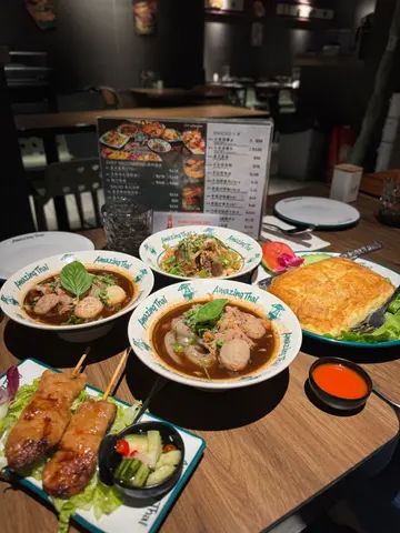 作为Poly人,都有去开红磡同尖东食嘢,但而家先知呢度有间超抵食又好味嘅泰国菜😍 🍜 泰斗招牌牛船河 ($32)🍜 泰斗招牌猪肉河 ($32)🍜 泰斗招牌牛腩河 ($32)呢度嘅面居然只系$32,抵到爆😍 仲可以拣船汤面或干捞面,面底可以拣河粉、金边粉、泰国蛋面、米粉,超多选择! 我哋拣咗一个金边粉捞面、一个河粉、一个泰国蛋面,蛋面好粗好似一块布咁,更有咬口🥰 面入面除咗猪肉、牛肉块,仲有肉丸添,而且汤底香浓,辣辣哋,好滋味🥳🦀 啖啖蟹肉奄列 ($178)我哋仲叫咗个超大件嘅奄列,切开里面全部都系蟹肉,超足料,好夸张😍!🍢 牛奶烤猪肉($38/2串)串烧方面我哋拣咗个牛奶烤猪肉,烤出嚟超香滑,肉质更嫩更好味🤤🍛 椰香青咖哩-猪肉 ($128)🌮 烤薄饼($36)最后我哋仲叫咗个咖喱同naan食😋 青咖喱好香滑,里面除咗猪肉,仲有茄子等蔬菜,沾满晒成块薄饼香脆滋味🥰 🧋泰式奶茶沙冰 ($48)🍵泰式奶绿茶($32)…查看更多