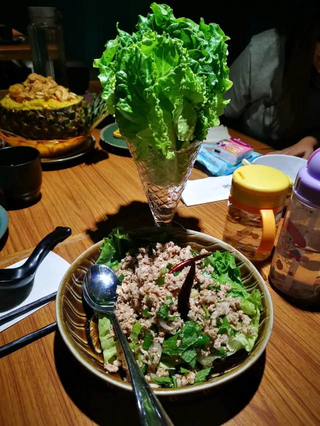 好耐冇去过泰国同食泰菜入天水围去返间有泰国feel嘅餐厅怀缅下,门口打卡位放咗架tuk tuk,地方大,夜晚有live band驻场,吾怕嘈可以坐出面听歌。朋友请食客吾想待薄我😂叫左二人餐,盐焗乌头转左食咖哩龙虾,不过龙虾唔够大,要加$150😅芒果软壳蟹米纸卷好味,烧鲍鱼、虾饼、通菜,海南鸡饭正常,不过不失,揸车入开新界游可以一试😊Thai Food dinner 😊🥢Deep Fried Prawn Cake 🥢Thai Papaya salad 🥢Grilled Abalone & Scallops🥢Soft she’ll crab and Mango Rice Paper Wrap🥢Hainanese Chicken with flavoring rice🥢Curry Lobster with Singapore style & Roti🥢Wok Fried Morning Glory with Belachan…查看更多