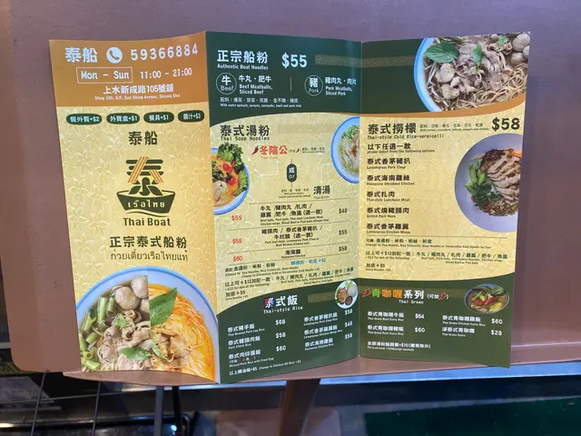 泰船 (上水) 网址: https://s.openrice.com/QrLS0FkKB00 地址: 香港上水符興街1號地下B及C號舖 电话: +852 59366884