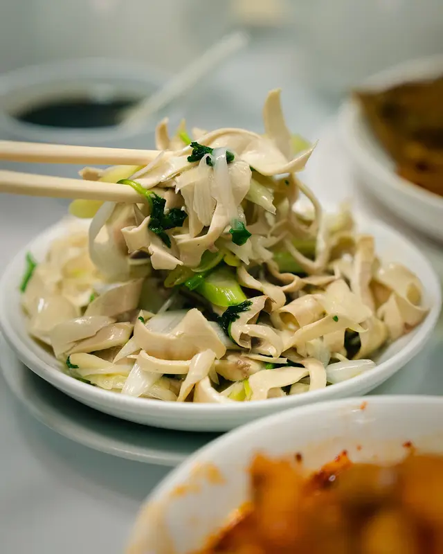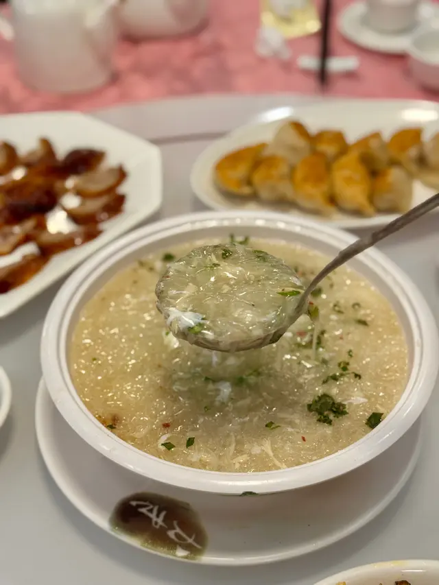 創立於1961年擁有64年歷史,位於尖沙咀的傳統京菜食府「泰豊廔酒家」由第三代經營,繼續傳承傳統美味,酒家依舊保留60年代裝潢,壽星公擺設、多福名畫、已故國畫大師張大千的作品都可以喺度見到,甚具歷史價值!傳統京菜菜式由多位老師傅掌舵,多款工藝繁複嘅手工名菜得以傳承,例如山東燒雞、京燒羊肉、松子桂花魚、鍋蹋豆腐、炒榨菜肉末配叉子燒餅、高麗豆沙香蕉、蔥花家常餅等等,都係店舖名物必食推介,秋冬更加可以品嚐到傳統老北京涮羊肉火鍋🫰✨山東燒雞是源自中國山東的經典魯菜,使用原隻新鮮雞先炸後滷再蒸的方式製作,再將雞肉手撕成絲,工序相當繁複,雞皮爽彈肉質滑嫩相當入味,再沾上自家製蒜蓉醬汁,風味濃郁✨炸春段北方菜裡面嘅春卷,外皮不是脆口而是雞蛋加麵粉的蛋皮,蛋皮金黃香口,再配上雞肉、芽菜、韭黃、冬菇等食材,以喼汁點綴驚喜好味✨京燒羊肉北京風味的傳統家常菜,以羊肋肉及多種調味香料,經多道工序燉煮、油炸製成,口感外酥內嫩,配上手工甜麵醬肥而不膩✨北京填鴨即燒片皮鴨席前即切,老師傅手法純熟,5分鐘已經片好,皮脆肉嫩夠入味,自家製手工北京傳統餅皮,質感粗糧口感煙靭,配上京蔥、青瓜和甜麵醬,傳統美味✨松子桂花魚將桂花魚肉切花刀後油炸,再淋上糖醋醬汁,因其外形酷似松鼠而得名,魚肉色澤金黃外酥內嫩,醬汁滿滿蝦仁、菠蘿口味酸甜可口,大人小朋友都好鍾意✨蟹粉小籠包內餡滿滿蟹黃、蟹肉、豬肉,皮薄餡多湯汁飽滿,蟹粉味道鮮美濃郁✨鍋蹋豆腐鍋蹋豆腐是山東省的特色名菜,獨有的烹調方法,豆腐經過調味浸漬,沾上蛋液經油煎,加以雞湯微火蹋製,口感細滑十分入味✨炒榨菜肉末配叉子燒餅炒香榨菜肉末,填入烤得酥脆的叉子燒餅,味道鹹香,粒粒芝麻更添口感,而家唔係好多地方有得食✨蔥花家常餅傳統北京家常餅食,蔥花加入麵團人手揉製,外酥內軟、蔥香十足,材料簡單,但卻做出令人難以忘懷的美味✨高麗豆沙香蕉酥脆蛋白外殼疏乎厘一樣鬆化,豆沙和香蕉的內餡味道天然濃郁唔太甜,大大力沾上糖粉,超級好食…查看更多