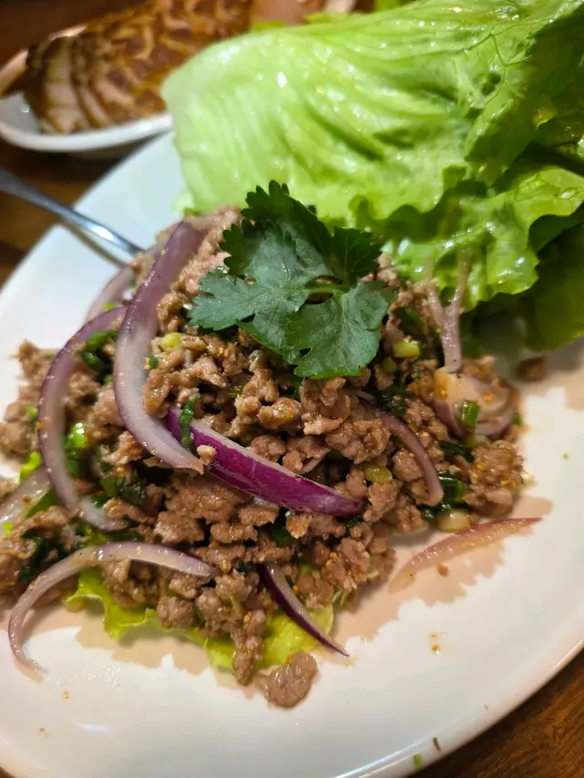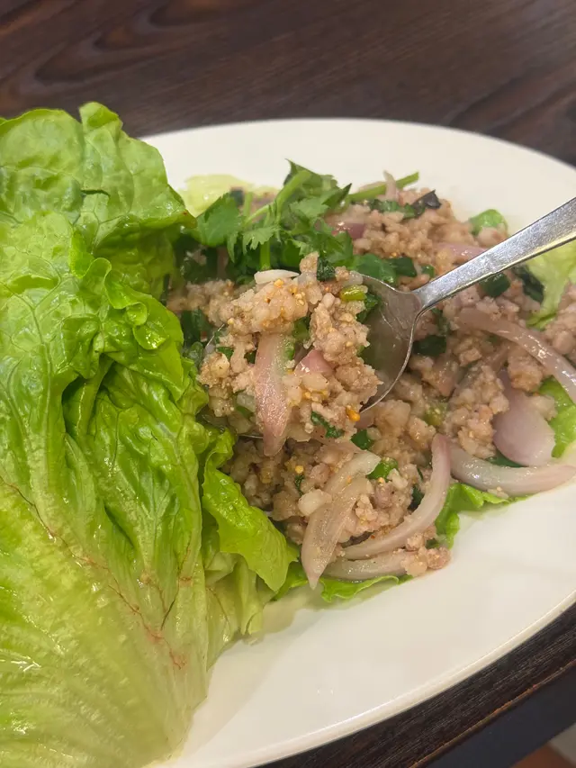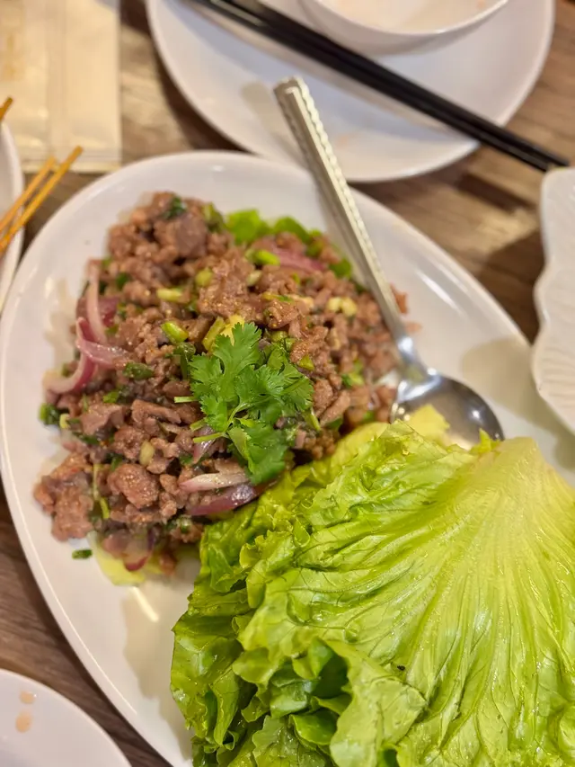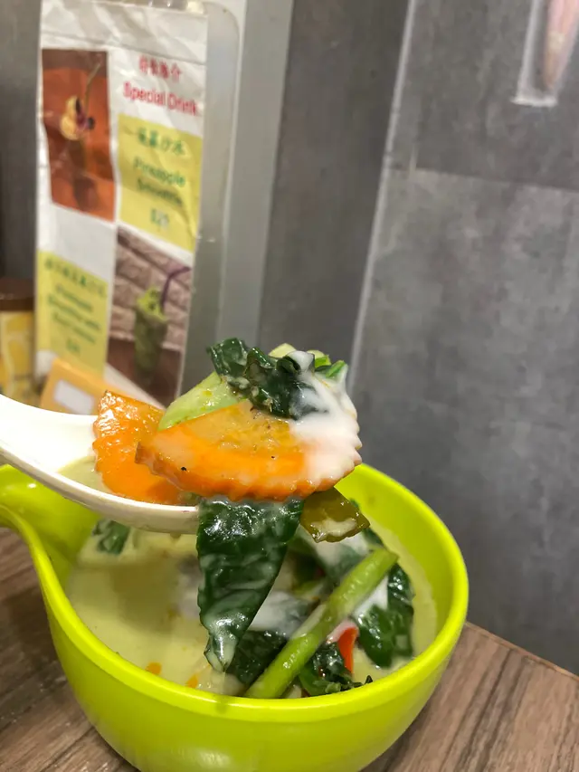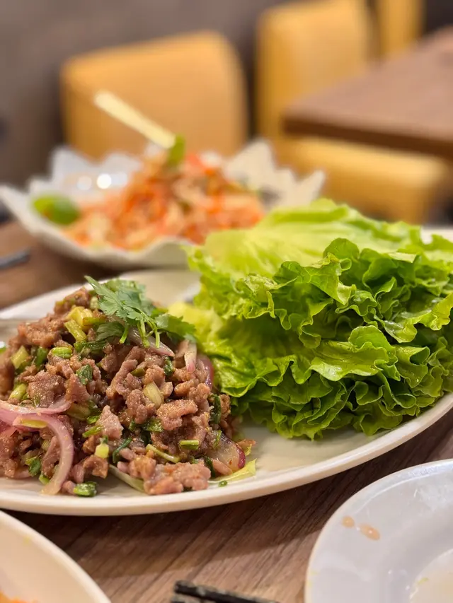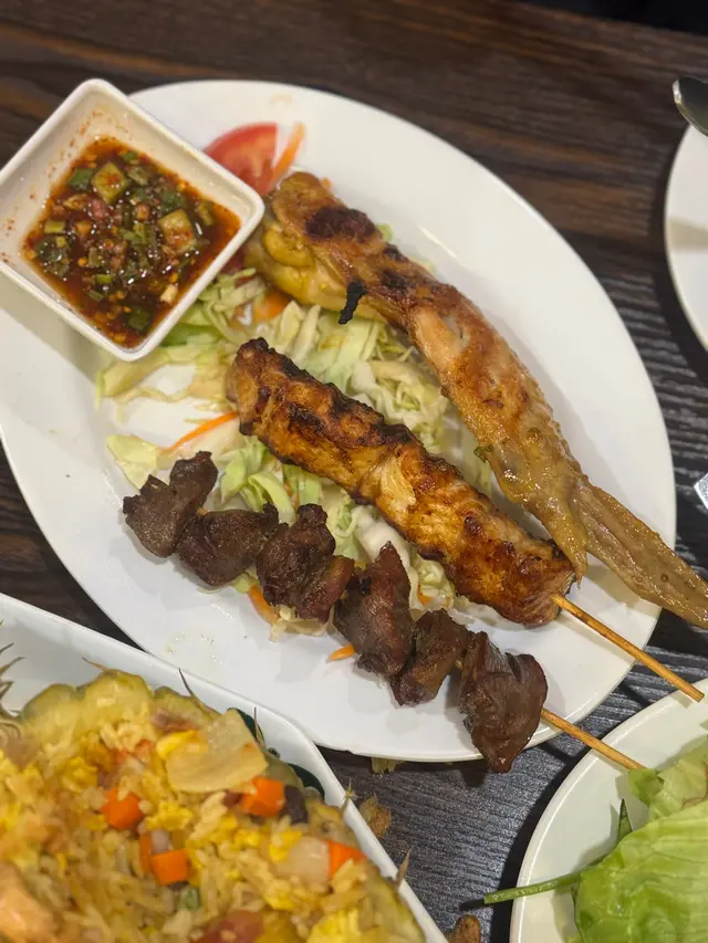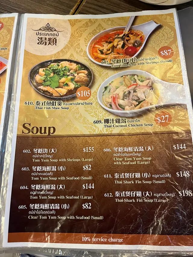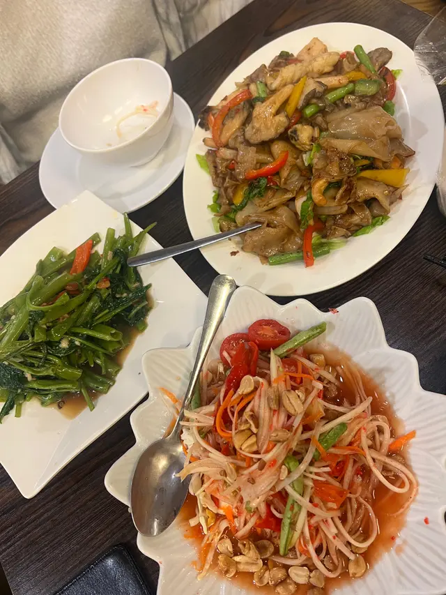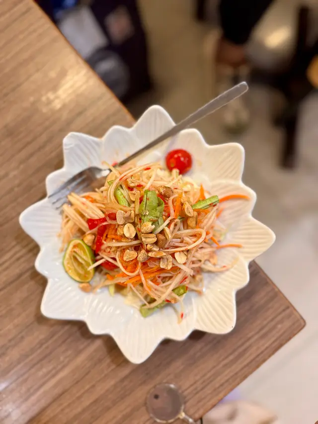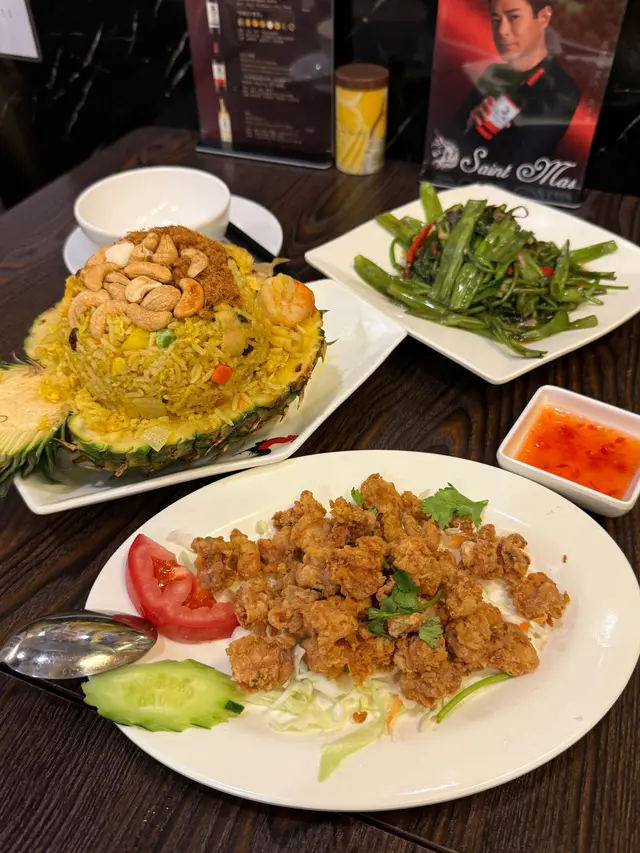 喺朋友極力推介之下,終於嚟到呢間人氣爆燈嘅泰國菜!餐廳位置超方便,城南道直行就見到,而家仲有地鐵直達九龍城,真係懶人恩物~平日六點幾衝到去,好彩仲有最後一張枱,睇嚟下次真係要乖乖book位先得!✨ 冬陰海鮮湯 (小)一上枱就聞到香濃酸味,湯料多到滿瀉!大蝦、魷魚、草菇樣樣齊,酸度夠突出,辣度輕輕哋,飲完成個人都醒神晒~✨ 柚子沙律真心驚艷!柚子肉清甜爆汁,夾住大大隻爽口鮮蝦,魚露嘅鹹香、椰子片香脆同青檸酸味撈埋一齊,開胃到食唔停口!✨ 炸蝦餅拼魚餅蝦餅外脆內彈牙,咬開仲有肉汁;魚餅質感好特別,鬆軟得嚟帶啲香茅香氣,點埋酸甜醬真係邪惡到震!✨ 必食三拼串燒豬牛雞各兩串,全部燒到金黃微焦,肉質嫩滑唔乾柴!靈魂所在係個沙爹醬——濃郁花生香夾住粒粒口感,掛滿串燒真係無得輸~✨ 馬拉盞炒椰菜苗鑊氣十足!馬拉盞鹹香逼入每棵椰菜,勁惹味,簡單小菜都做得咁有層次~✨ 最特別的飲品羅勒葉菠蘿冰:估唔到加咗羅勒葉嘅菠蘿冰感覺咁清新!好香嘅羅勒葉味道~不過唔係個個接受到,有興趣可以試一試🥰泰式奶茶一定走唔甩,老細必點!每道菜都咁正,難怪晚晚排長龍!以後想食泰菜諗唔到第二間,不過切記要訂位啊~…查看更多