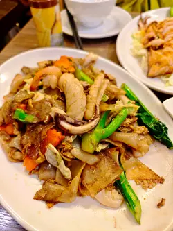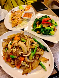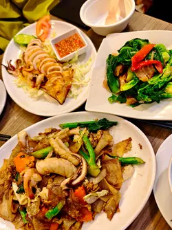 琴日真系好开心!我同老公一齐入场撑港队比赛,大家都好兴奋。不过入场之前,梗系要食饱饱先啦。上次喺九龙城食过泰象馆,觉得好好食,所以今次要encore。一入餐厅发现原来好多球迷都系度食饭,真系好热闹!一坐低我哋就叫咗个烧烤鱿鱼,因为上次已经好想食,当佢上枱𠮶阵,已经闻到好香,有啲烟韧嘅鱿鱼,烧得啱啱好,咬落去肉质好有嚼头,再加上配埋𠮶个酸酸辣辣嘅海鲜汁,真系好夹!每一口都咁正~接住我哋叫咗一个脆肉炒椰菜苗。脆肉原来就系讲烧肉,再加埋椰菜苗那种爽脆口感,简直系Perfect Combo!我钟意佢用咗少少蒜蓉,令味道提升咗唔少,整碟菜好适合送饭!我哋又嗌咗个泰式干炒海鲜河,碟河粉好大碟,非常足料,再加上上面好多海鲜。炒得好有镬气,唔会油腻。最后就梗系要食返个芒果糯米饭做甜品啦!芒果切得细细块香甜好味搭配埋黑白糯米饭,淋上椰汁简直Perfect。食完呢一餐,我同老公可以话食得非常满足,价格又唔贵都几抵食。好期待下次再嚟呢间餐厅试多啲新菜,总之呢度绝对系值得推介嘅好地方!#九龙城 #九龙城美食 #泰象馆 #泰国菜泰象馆 (九龙城)九龙城城南道48号地舖…查看更多