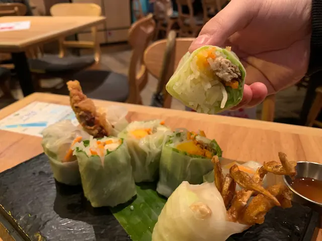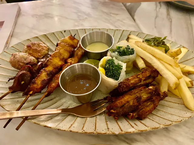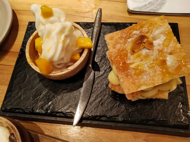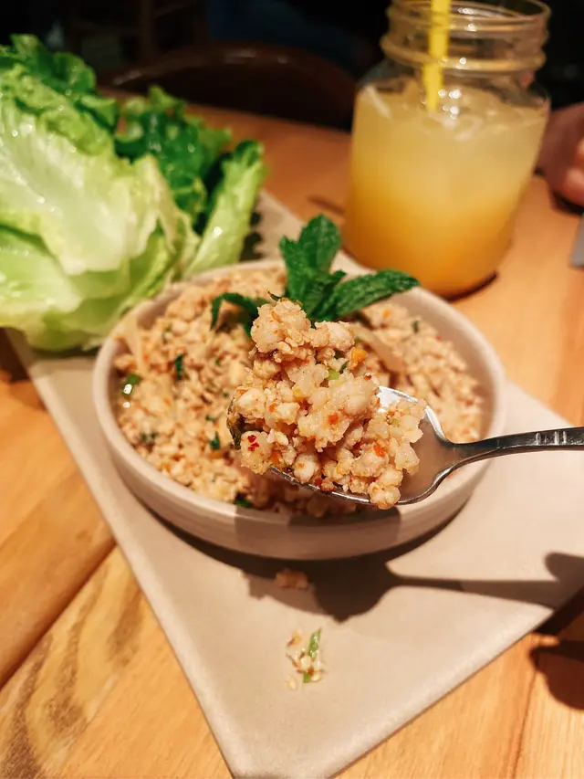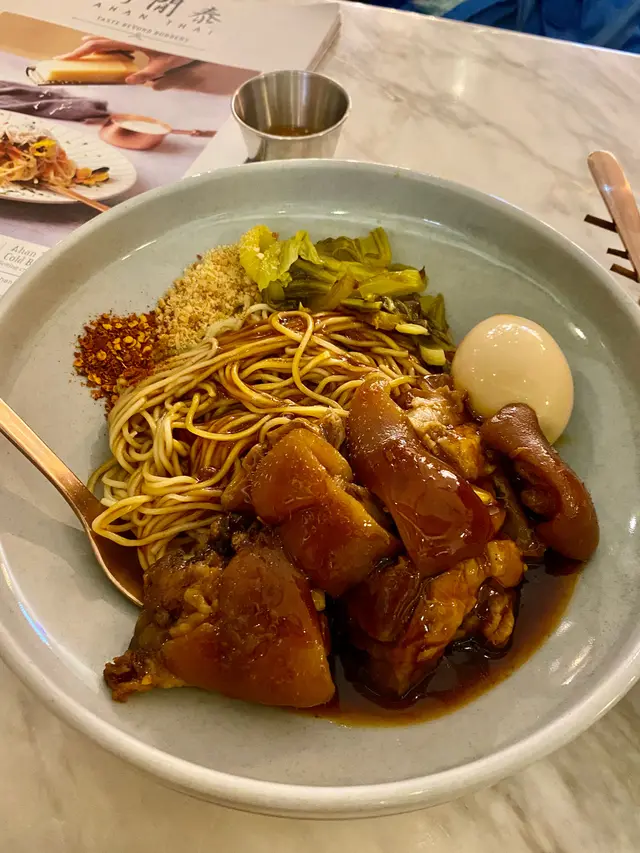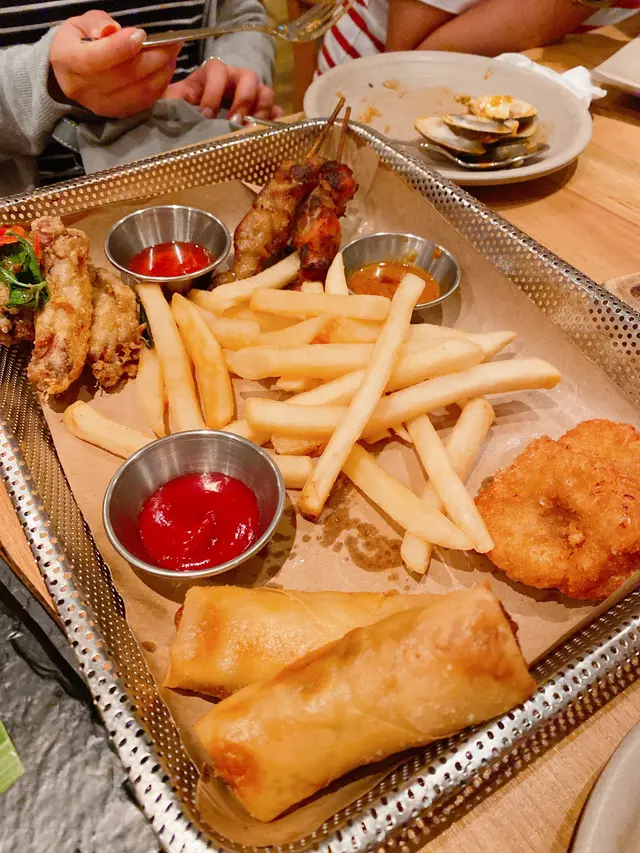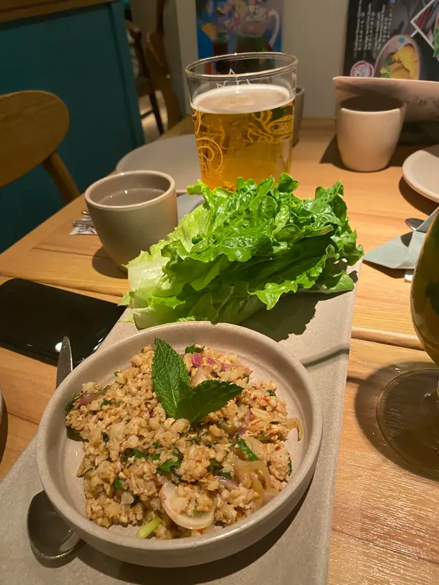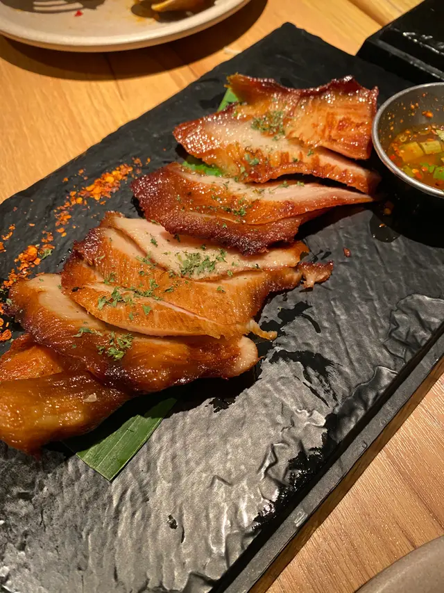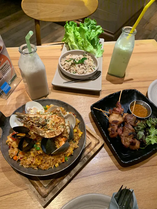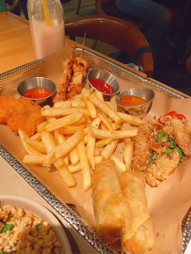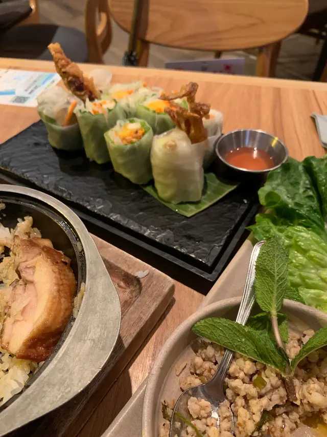 和朋友在尖沙咀吃飯,他知道我喜歡吃雞,就選擇了一間在美麗華商場的泰國餐廳。半隻海南雞,完全起骨,味道尚算不錯,雞肉亦算嫩滑,份量兩個人食就多了一點。小食拼盤包括沙嗲串燒、炸春卷、炸蝦餅、炸雞翼、炸薯條。兩個人食,我覺得比較熱氣。蝦餅味道是五樣食物中最好的,炸雞翼就冇乜味。冬陰功湯非常好飲,份量一般,不過味道濃郁,湯料亦足,我飲完一碗又一碗。食完正餐,就梗係要點甜品啦,佢嘅甜品選擇都好多,我下次都想去試吓食其他嘢,不過去第一次去嘅泰國餐廳一定要食咗佢嘅芒果糯米飯先。呢個芒果糯米飯我非常滿意,佢鋪排得好似西式嘅長條型蛋糕咁,賣相精美,糯米飯夠淋,芒果都甜,配搭喺椰汁上嚟啱啱好。…查看更多