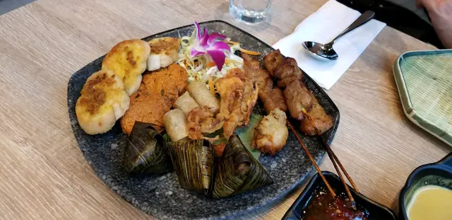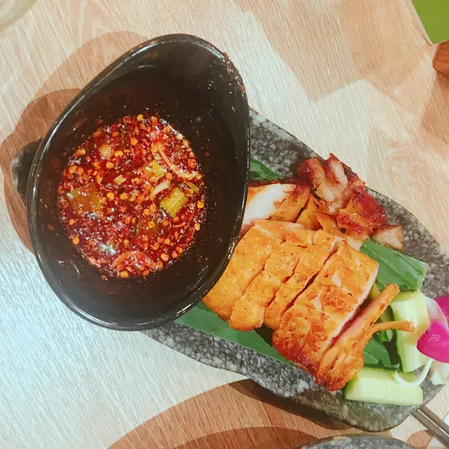 .🔻泰越概念 V.Thai.再黎泰國菜!!我地三個都有個共通點就係大家都好鐘意泰國,有年仲大家生日都係食泰菜😂😂.🔻泰越湯河粉 ($128)碗粉有生牛肉,墨丸,牛丸,扎肉,牛腩片,每款1-2件,河粉唔多,好多芽菜墊底,個湯底唔算好濃,清清地咁,食完唔口渴,所以食完d 粉都飲阻幾啖湯☺本身諗住呢個價錢應該會好大碗,呢個份量仲少過譚仔既套餐,2個人係絕對唔夠既。.🔻自選沙嗲串燒 ($118)有豬,雞,牛揀,眼大肚窄既我揀阻每樣2串,沙嗲醬甜甜地,比較杰身,我覺得香味差dd唔夠重味,但係串燒搭救,3款串燒都juicy, 燒得幾香,唔錯(但東大街印尼沙嗲屋都係我至愛😂) .🔻泰海南雞半隻 ($128)份量唔算少,食落去好似鹽焗雞咁,本身隻雞已經係咸咸地,雞肉唔算嫩,但都唔係鞋既,雞皮好滑好順口好香雞油味☺☺佢跟2個汁,一個係姜油,一個係泰式辣汁,我覺得唔點汁都已經好夠味。.🔻總結係環境唔錯,d位好闊落,坐得幾舒服,食物質素都唔差既,服務比較被動,不完美,可接受。…查看更多