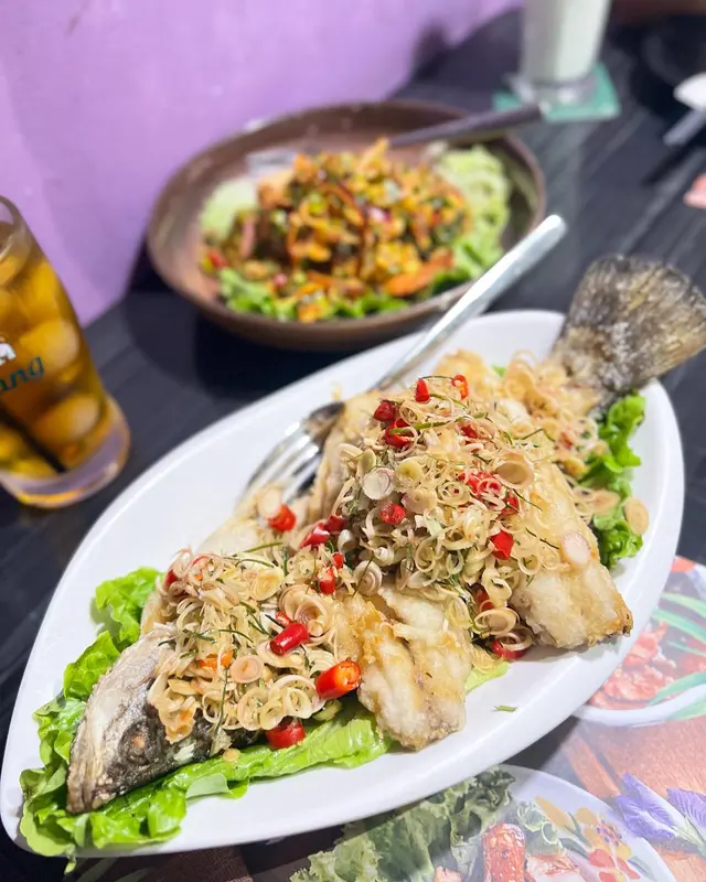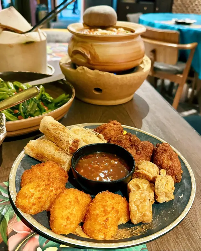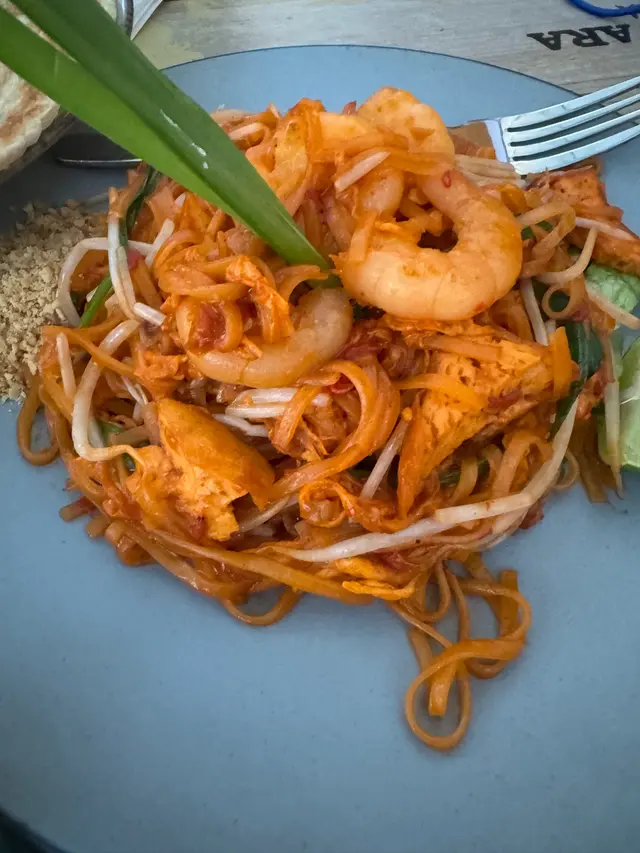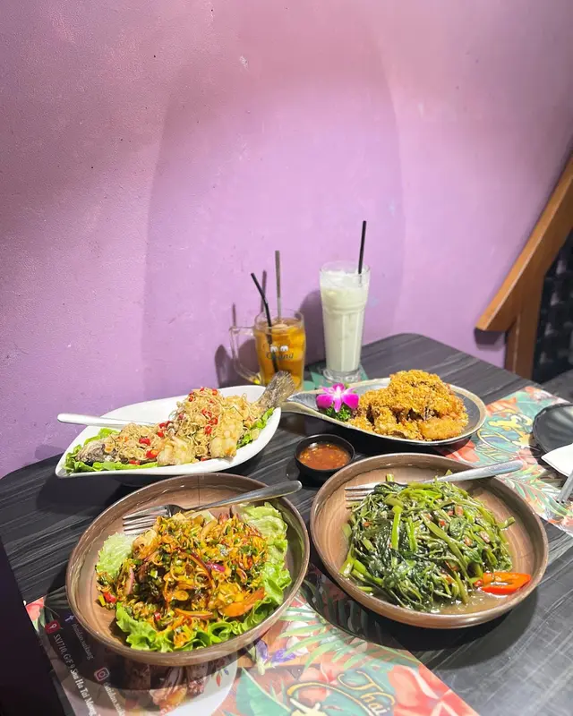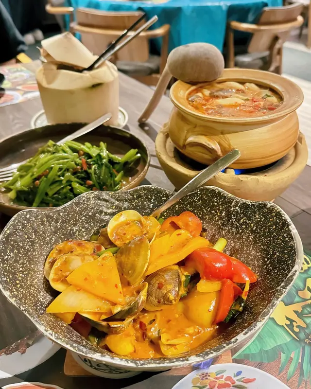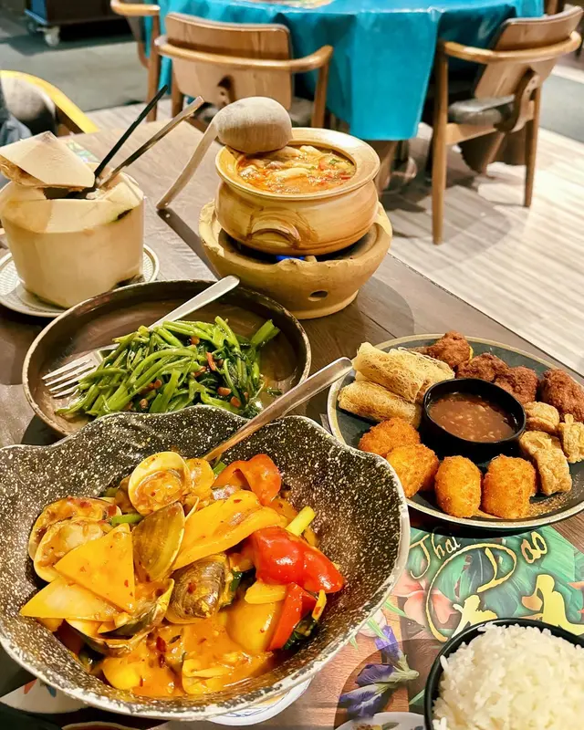 現在香港真的有不少餐廳結業,想吃什麼就要把握時間位於西貢的泰道只營業到5月31日,之後店名就會改掉。朋友說這間泰國菜頗好吃,那就襯還沒轉名前去吃。不知道之後廚師是不是會換掉。入口處有個很大的雕像,還有個浮誇的燈飾。要走到最盡頭才是我們要去的餐廳入口,出面有能看海的室外座位。不過當日剛下完雨,太多的飛蟻只好選坐室內。點了個 大頭蝦冬蔭公湯 (HKD 178/細)細的夠4-5人用,大約每人可以飲到兩碗左右,每人有半隻大頭蝦。 會是偏辣一點,但酸酸辣辣極為開胃。泰道黃金菜 (HKD 128/細)就是將通菜炸成天婦羅。炸粉漿不算太厚,是幾得意的。泰式香燒雞 (HKD 188/半隻) 是朋友推薦一定要點的。燒得很香,連雞皮也燒得十分香脆。當然雞肉仍然是很嫩滑多汁。還有不要錯過這裡的咖喱,點了一款辣和一款有三個辣椒的。椰香清咖喱 (HKD 148) 問了店員說會標示三個辣椒是因為對比其他會稍辣。但其實吃落那辣度真的不太顯,反倒是椰香比較濃。這咖喱我們選了牛,是嫩口的牛肉片。咖喱海鮮 (HKD 168) 是質感比較濃稠的咖喱,個人覺得比前者的更惹味。海鮮包括了青口、魷魚和蝦,配 烤薄餅 (HKD 38) 來吃剛好。飲品點了三款 - Iced Milk Tea (HKD 48) 甜度可以。Lime Soda (HKD 48) 嚐第一口就喝到很重的青檸味,即刻醒一醒神。菠蘿沙冰 (HKD 68) 這個好大杯,溶得有點快。…查看更多