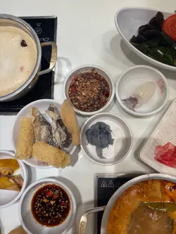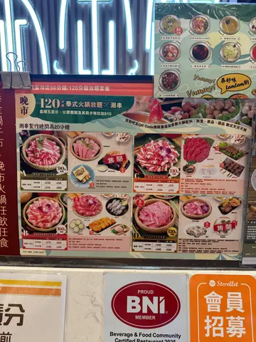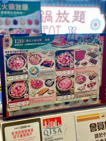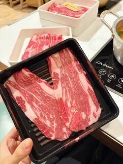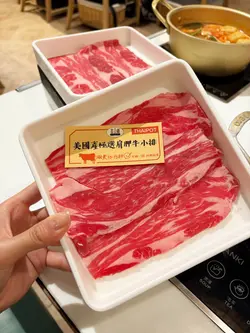 火锅店提供三款套餐:美国产极选肩胛牛小排餐、椰浆文昌鸡锅和Gym Gym 自控套餐。喜爱吃牛肉的我,当然选了「120分钟美国产极选肩胛牛小排餐」。锅底选择丰富,我们点了药膳猪骨白汤锅和青柠椰奶鸡汤锅。我喜欢一人一锅的设计,可以根据自己的口味随意搭配。QR code 餐点有牛肉、牛舌和豚肉。最推荐的是美国产极选肩胛牛小排,纹理清晰,油脂丰富,肉质柔嫩。还有虾滑、墨鱼仔、炸物和串烧。自助区有一个活海鲜池,里面的流水虾可以任食,即捞即煮,肉质鲜甜。火锅配料都有好多选择,而熟食区的选择也不少,有肉质嫩滑的海南鸡。甜品和饮品也很丰富,有椰汁糕、泰式糖水等,还有沙冰、雪糕和雪条,饮品就有泰式奶茶、香茅龙眼水以及各种罐装饮品。查看更多