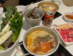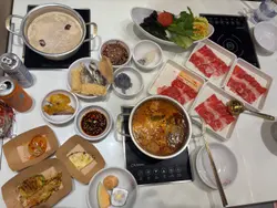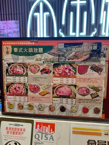成日经过荃湾海之恋呢间泰金锅俾佢吸引,今日终于有时间嚟食啦!呢度除咗可以有牛肉火锅放题之外,最特别就系可以有流水虾放题即捞即煮!有多款套餐可选择: 1️⃣牛肉火锅餐有四款,其中包括美国产极选肩胛牛小排餐2️⃣椰浆文昌鸡锅鸡皮薄肉嫩,以椰浆烹煮,天然甜味,突出鸡肉的清甜3️⃣Gym Gym 自控套餐采用椰子水作为火锅汤底,配以优质蛋白质,健身人士或注重健康人士都非常适合是日选择:120分钟美国产极选肩胛牛小排餐🥣有九款汤底可以选择,客人可以自选一人一锅火锅汤底🔸马来娘惹叻沙锅汤底较浓够惹味,用嚟滚鲜虾就非常合适啦!🔸药膳猪骨白汤锅如果钟意清清哋嘅朋友呢款药膳汤都系唔错嘅选择!🔸肉类🔸美国产极选肩胛牛小排🔸澳洲产草饲羊肩肉🔸澳洲产下肩胛肉眼肉🔸严选特级牛胸腹🔸特选豚梅肉🔸 流水虾放题🦐🦐🦐活海鲜即捕即煮,客人可以喺现场鱼缸内用冰桶捞取流水虾及新鲜活蚬,保证生猛新鲜,用冰整晕啲虾先再放落火锅内煮熟,就不用怕生虾弹出来😆,虾肉弹牙新鲜👍🏻可以无限encore啊😋🔸热盘自助吧 (多达40款以上的食物)食物种类非常多,包括有 泰式串烧、冬阴功汤、卤水猪肠、豆腐及萝卜、麻辣鸭舌、海南鸡、椒盐豆腐、黄咖喱鸡件、点心虾饺烧卖、炸物包括炸洋葱、炸鱼皮、响铃、虾片、鱼片头,泰式公仔面🔸泰式甜品除咗多款雪糕、雪条之外,仲有泰式甜品包括椰汁糕、斑斓糕等等,仲有现场即制刨冰,客人可随喜好加入多款配料,仲有木瓜雪耳糖水润一润🔸除咗罐装汽水啤酒之外,仲有多款泰式饮品可供客人选择查看更多