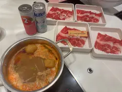 🦀近排活捉海鲜好热门,所以嚟咗泰金锅试下🤣我地拣咗120分钟美国极选肩胛牛小排餐(火锅放题B餐)餐厅仲有椰浆文昌鸡锅 ,鸡皮薄肉嫩,味道香甜,以椰浆烹煮,天然甜味,可以突出鸡肉嘅清甜以及最新推出「Gym Gym自控套餐」定量餐,采用椰子水作为火锅汤底,配以优质蛋白质。🥘坐低发现原来系一人一锅,可以拣各自喜欢嘅汤底我拣咗娘惹喇沙汤,充满椰香带少少辣朋友唔食辣拣咗药膳猪骨,养生之选🍗自助区有好多熟食选择首推海南鸡,肉质滑嫩,配埋特制酱汁酸酸甜甜好开胃,冬荫功汤免费任添但绝不偷工减料,忍唔住饮咗3碗😛🥩美国极选肩胛牛小排肉质软淋,油脂充足自助区配料选择非常多,蔬菜亦非常新鲜,有菇类、丸类及菜等等应有尽有🧋饮品除咗一般罐装及纸包饮品外,最特别一定系泰式奶茶!!甜品区提供多款雪糕及生果之外,仲有几款泰式甜品🤣西米椰汁糕必食,风味十足🦐主角流水虾放题,啲虾超级生猛,要夹到佢地都无想像中咁容易夹完上嚟要即刻放入冰桶,如果唔系佢地会系咁跳想逃走除咗虾,仲有沙白同大蚬可以拣捞完拎去即刻煮,新鲜到不得了忍唔住encore再encore😛🍢除咗打边炉,仲有少量即叫即做串烧提供😗特别推介烧娃娃菜,烧得唔会干身,调料惹味,赞💡埋单时店员温馨提示询问做唔做会员。原来逢星期二会员晚市堂食火锅放题,四人同行,一人免费,全线分店适用,优惠期至10月28日,咁抵食唔怪得今晚咁多一家大细嚟帮衬✨查看更多
