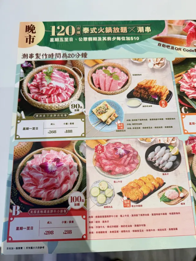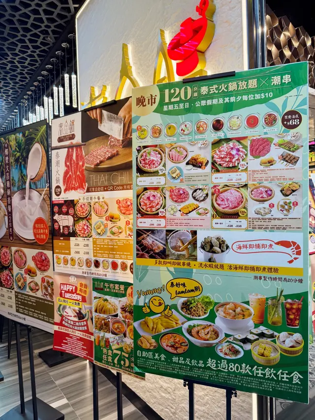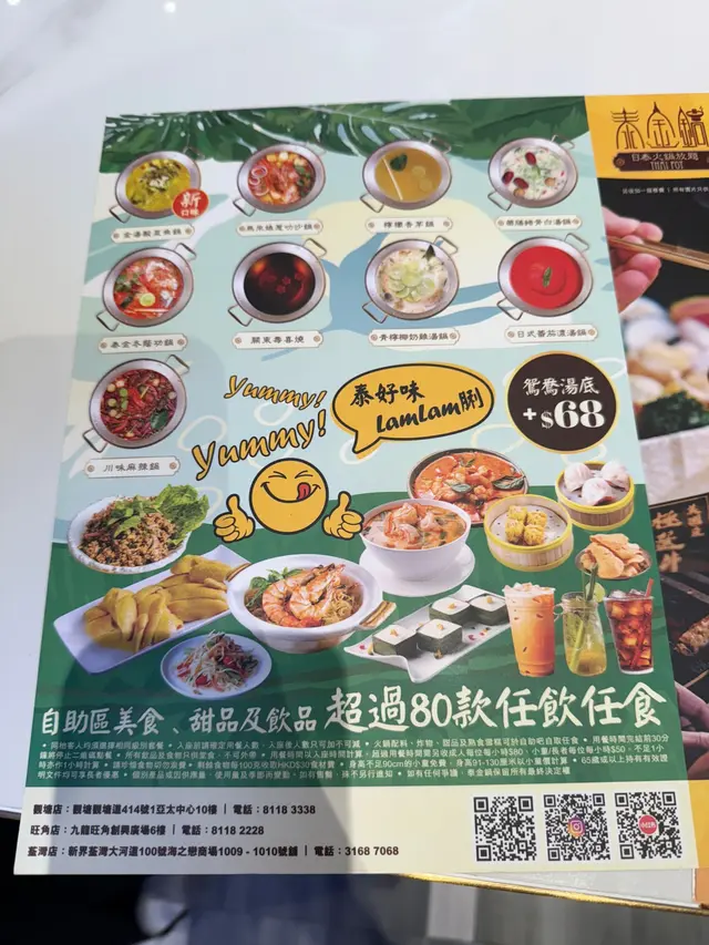 泰式邊爐放題第一次食,今次去左~泰金鍋~,係幾正,泰式湯底、熟食、野食、甜品👍呢度有三個套餐🤤 美國產極選肩胛牛小排餐、 椰漿文昌雞鍋、 Gym Gym 自控套餐,各有特色。🐥 椰漿文昌雞鍋🔹️海南名菜「文昌雞」🔹️雞皮薄肉嫩,易於消化吸收且味道香甜,以椰漿烹煮,天然甜味,更能突出雞肉的清甜。🔹️含優質蛋白質,有助肌肉生長。🔹️脂肪含量較低,含多種維他命B,促進新陳代謝。💪🏻 最新推出「Gym Gym 自控套餐」定量餐🔹️專為健身人士及關注體重人士設計!🔹️採用椰子水作為火鍋湯底,配以優質蛋白質。🔹️食客可在自助蔬菜吧盡情挑選15-20菜及菇類食用,套餐附奉沖繩鹽。身為牛魔王梗係揀 🥩 B餐美國產極選肩胛牛小排餐😍仲可以👇🔹️流水蝦放題,活海鮮即捕即煮🔹️多款即叫即做串燒🔹️泰式甜品👀我推介❤️金湯酸菜魚湯❤️蝦&蜆 ❤️下肩胛肉眼 ❤️燒賣❤️海南雞❤️泰串燒泰金鍋 🔥 優惠多籮籮💰🔹️成人8折優惠正價惠顧晚市放題A、B、C餐,19:00前離座或 20:30後入座,並以電子貨幣支付,即有優惠。🔹️「Happy Tuesday會員有禮」逢星期二會員晚市黎食,四人同行,一人免費。全線分店適用,優惠期至10月28日。🔹️「樂悠卡午市特惠」持「樂悠卡」的60歲或以上長者,午市放題可享小童價。星期一至星期日、全線分店適用,優惠期至10月30日。…查看更多