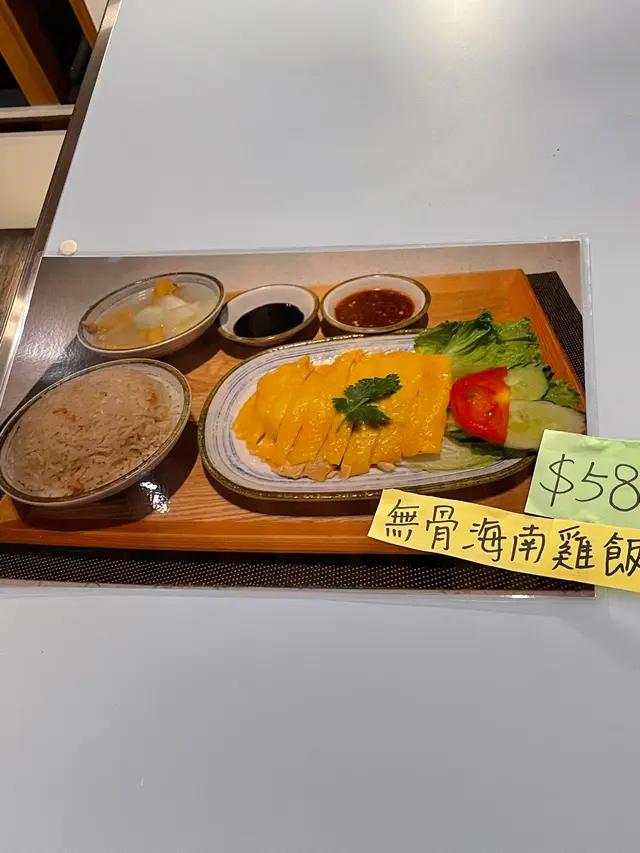 放飯時間去到 店內都幾多人午市套餐只係五六十蚊到試左$60無骨海南雞飯雞肉嫩滑 雞份量都好多 幾抵食配上油飯 好香+$8可以轉雞髀👍🏻食物選擇都好多 下次再試吓其他嘢食查看更多