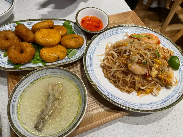 今天從新聞得知泰國放寬入境限制,入境不需再隔離,很想吃泰國菜,於是與阿仔去了此食店,order了泰式牛湯船麵及大蝦炒金邊粉。泰式牛湯船麵真材實料,竟有五粒魚蛋及牛肉七片,麵底也很多,但牛肉片略為硬了一點,相信原汁原味沒有用鬆肉粉,但湯底喝後不口渴,整體也算大碗抵食;大蝦炒金邊粉目測都有四、五隻大蝦,酸酸甜甜夏天首選,價錢不算貴,再叫了一杯椰汁冰、一杯青楞梳打,盛惠$124,下次想試吓海南雞飯,聽待應説老板做了很多了泰國菜,而且是聘用泰國廚師查看更多