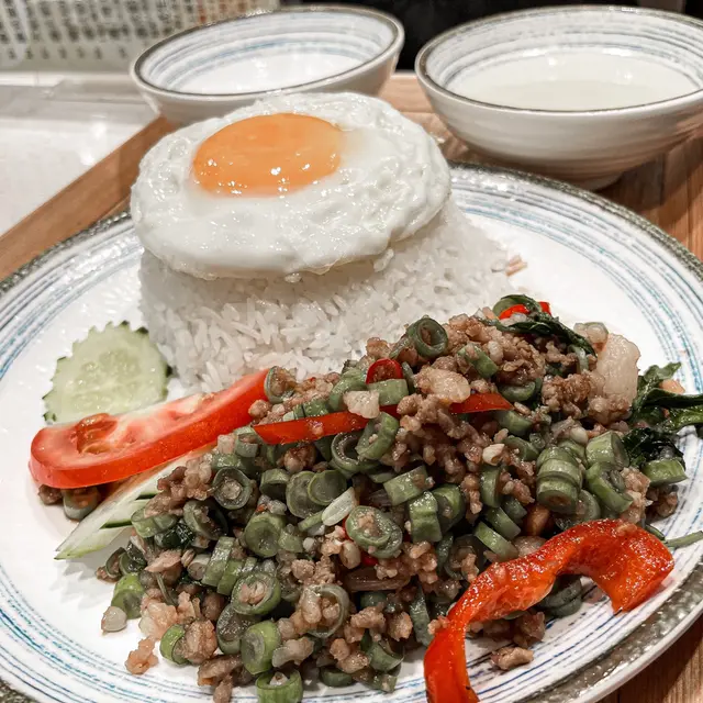 ⋆⁺₊⋆.泰閣海南雞飯專門店.香葉肉碎煎蛋飯 / $56 /豆角粒炒九層塔肉碎,是我超愛吃的料理♡︎♡︎這道料理食材雖然普通,但需要師傅火侯控制的功力୧( "̮ )୨✧ᐦ̤鍋氣才能將辣椒與九層塔的香氣帶入豆角與肉碎之中。呢度嘅師傅製作平價泰式料理,也是有用心之處ㅋ.沙爹牛肉串 / $30 / 牛肉有抹上香料或類似香茅的調味料,但似乎不是現燒,出品時沒有熱度*/ω\*)沙爹沾醬是奶香味偏重的那種,失去了傳統沙爹醬應有的花生味的口味。.泰式酸辣鳳爪 / $28 /鳳爪去骨對半,師傅非常貼心。自製特調的泰式檸檬酸辣汁,配上新鮮切片切絲的紫洋蔥、芫茜、蔥頭、蔥段拌勻,開胃耐吃,很適合下酒菜的平價小吃,滿分♡︎♡︎.泰式炸魚餅 / $18 /這應該是現成魚餅,每次吃泰式餐廳,都會手賤點一下魚餅ㅋㅋ但每間炸出來的魚餅都一樣,外觀油亮,吃起來也油膩膩,表面與內心都軟嫩,與我個人想像的炸魚餅不盡相同,可能我比較不懂欣賞泰式炸魚餅🤣🤣.⌫ 泰閣海南雞飯專門店 (觀塘)觀塘牛頭角道305-325A號官塘立成大廈地下G號舖..#觀塘咔嚓#泰式咔嚓查看更多