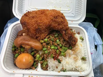 其实每日要谂究竟一日三餐食咩好,有时真系几烦恼,不过自从两𩠌饭出现之后帮左唔少人烦少好多,所以好多人为左唔需要烦而唔介意大排长龙去买两𩠌饭,排队排到差唔多到果阵自自然然就会谂到食咩,因为谂得太慢惊阻著下家,未到已经睇定谂定!或者呢个就系两𩠌饭既魔力...... 唔知几时开始卖两𩠌饭既餐厅好似总有一间在左近咁,不过选择睇落好似好多,事实上来来回回都系果D𩠌开始无乜新意!途经九龙城见到泰风情呢间泰国餐厅,居然有泰式两𩠌饭,$37 两𩠌饭,每加一𩠌 $9,堂食须加 $5 奉送冷热饮品,净𩠌可双拼 $48,咖哩类衹只单拼。花多眼乱唔知拣边两𩠌,三𩠌都系 $46 就拣三𩠌,香叶肉碎炒豆角🔥、泰式卤水猪手同埋炸鸡髀,香叶肉碎炒豆角🔥辣辣地送饭一流!泰式卤水猪手唔只有猪手,仲有一只卤水蛋,卤水蛋好入味,猪手口感好滑好腍,唔错!炸鸡髀大大只炸到脆卜卜,$46 泰式三𩠌饭可以话系无得弹!Read More