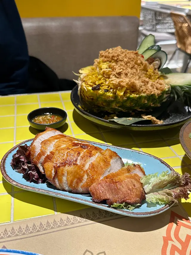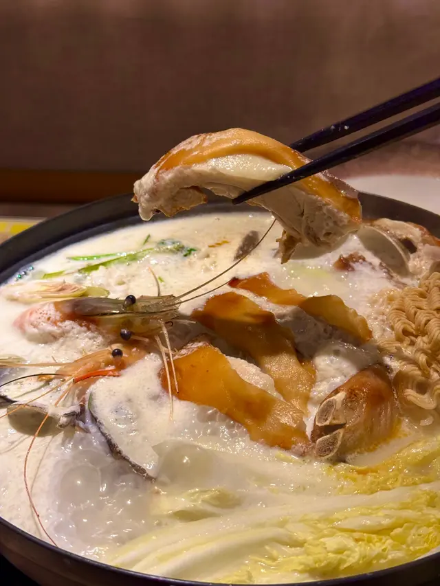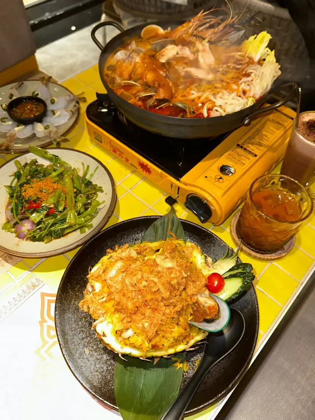 My friends and I visited "Thai Kau" in Mong Kok. We originally wanted to try their signature Volcano Ribs 🌋 and creative 404 Black Broccoli 🖤, but they were already sold out! However, the other dishes we tried were equally delightful and full of surprises.The Coconut Chicken Broth Suckling Pig Hotpot was absolutely fantastic! 🍲 The broth was rich and creamy with a hint of sweetness, and the suckling pig skin soaked up all that delicious soup, making it incredibly flavorful. My friend even joked about wanting to pack the broth home to cook noodles with it later! 😂Next, the Supreme Beef Boat Noodles were incredibly generous in portion. Loaded with fatty beef slices, tripe, and beef balls, you could tell the broth was simmered with plenty of ingredients – we didn't waste a single drop! 🐮🍜The Golden Shrimp Cakes were perfectly crispy on the outside and wonderfully bouncy inside. Dipping them in the sweet and sour sauce made them utterly irresistible – we just couldn't stop eating! ✨🍤We saw the Volcano Ribs and Black Broccoli on other tables and they looked amazing; we definitely need to come back earlier next time to try them! Have any of you tried them? Let me know if they're as good as they look! 😋…查看更多