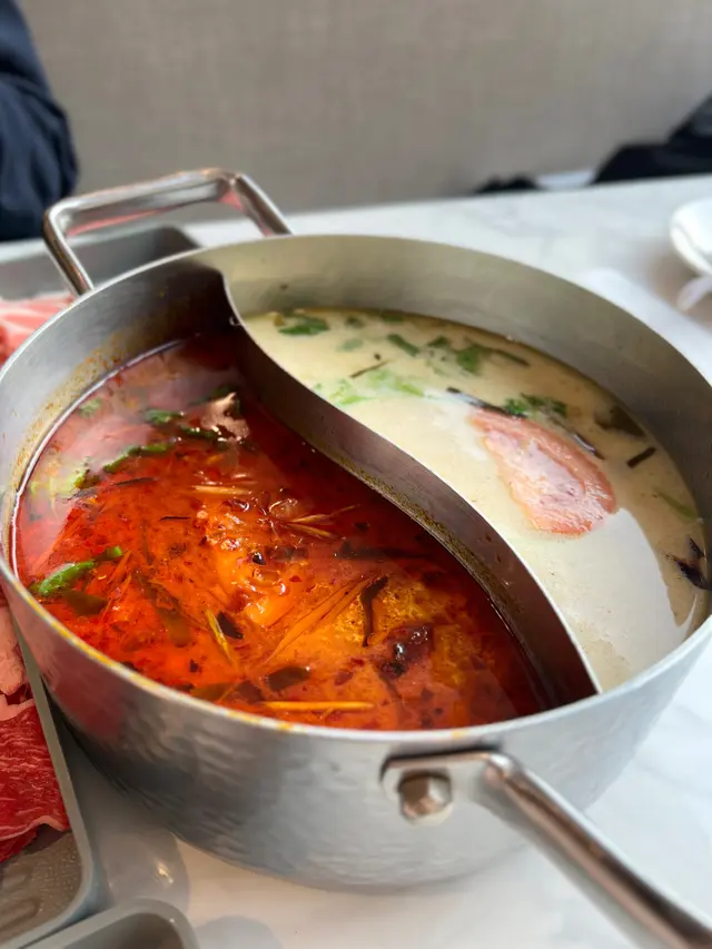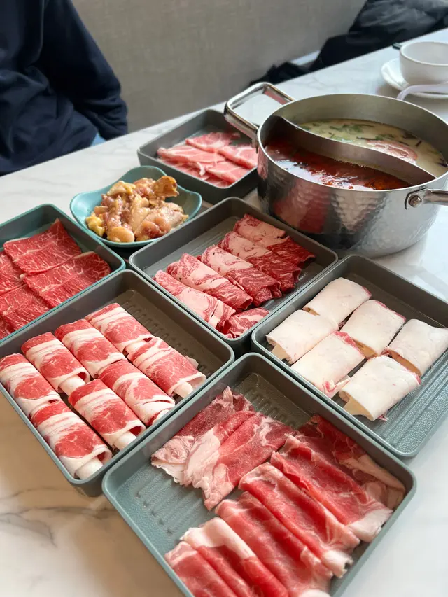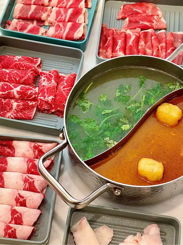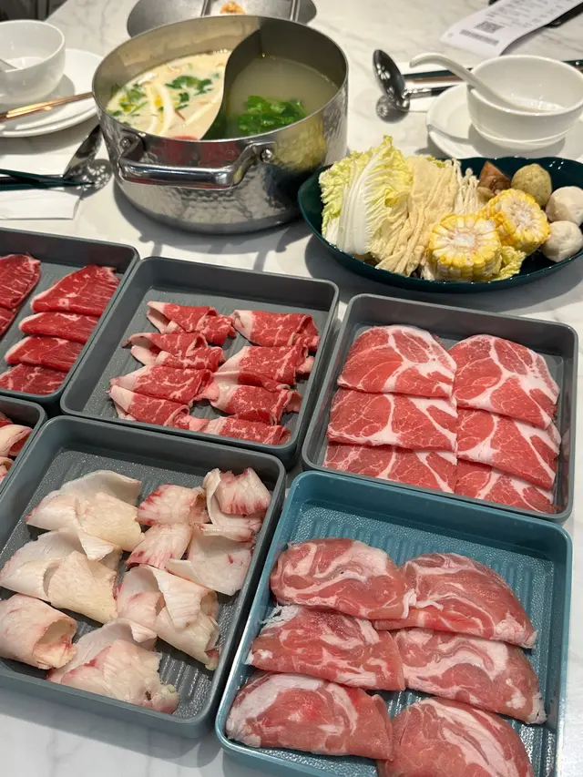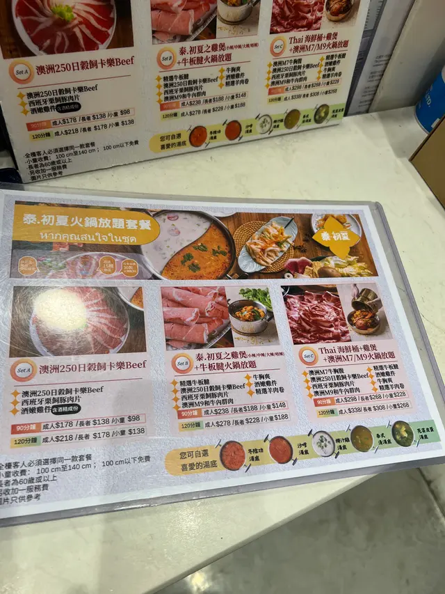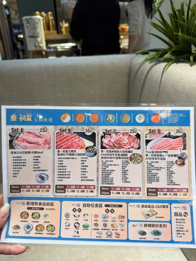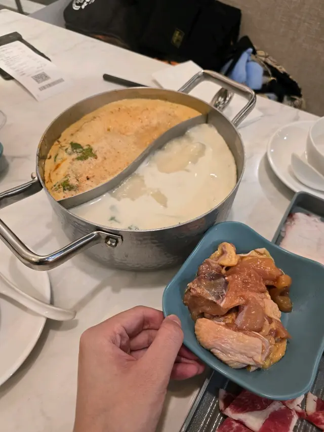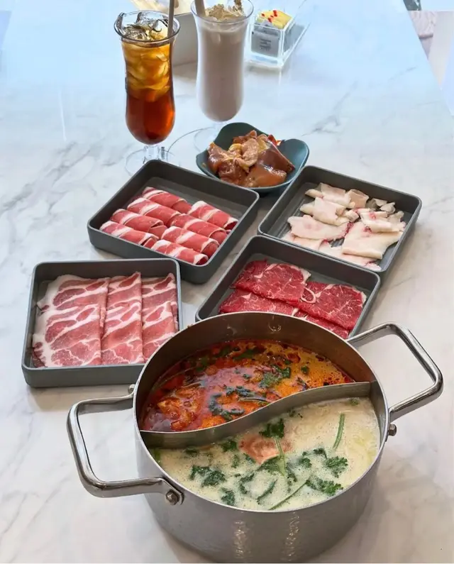 荃灣泰·初夏泰式火鍋放題必試雞煲牛板腱餐廳環境寬敞舒適,有自助區同落地玻璃窗。120分鐘放題多款肉類同配料,份量十足。6款湯底任選。蕃茄湯湯底開胃,椰汁雞湯甜香濃郁,完美鴛鴦湯底配搭。牛胸爽肉質軟嫩帶嚼勁,香氣十足;豚肉片切得薄滑,脂香滋味;卡樂Beef雪花均勻,入口細膩融化。牛板腱紋理清晰,口感彈牙肉質細嫩有嚼勁,牛味濃郁;M7牛胸腹油脂豐富,肥瘦平衡;精選羊肉卷8片薄切,肉香濃郁軟滑。雞煲:辣度適中,雞件鮮嫩入味,香氣十足令人胃口大開。 炸墨魚丸及炸魚餅外層香脆,內裡鮮甜彈牙。 飲品如蜂蜜蘆薈綠茶、菠蘿梳打清新消暑。泰·初夏地址:荃灣青山公路-荃灣段398號愉景新城2樓2030號舖 …查看更多