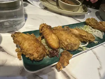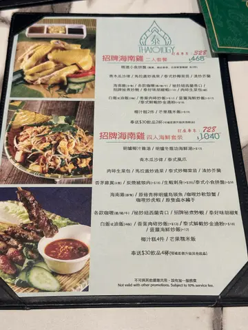 今日约左朋友聚旧,黎试试旺角哩间泰国菜。太多选择懒得拣,叫左个4人餐,3个大男人岩岩好够食。招牌海南鸡 四人海鲜套餐 $1040 (订座优惠$728)🔹明炉椰汁鸡汤饮得到椰香味,鸡肉好嫩滑,每人可以𢳂到2-3碗🔹泰式凤爪正常发挥,可以再重口味啲🔹肉碎生菜包份量超多,猪肉粒切得较碎,肉碎偏肥,非常浓味,浓到个人觉得咸左少少😶🔹炭烧猪颈肉 +$18烧得好惹味嘅猪颈肉,外皮焦脆,中间咬落系软腍腍,本身调味已经好正,点埋佢俾既酱汁再重口味啲,推荐😋🔹咖喱炒软壳蟹本身几期待哩味𩠌,份量又系好鬼多,但系一食,软壳蟹应该唔系新鲜炸起,成旧都系偏腍,咖喱汁亦都冇乜特别,成碟得个咸字🔹泰好味胡椒虾好重胡椒味,虾都算新鲜而且大只,不过成煲嘢系常温唔系热的,应该煮定摆咗喺度一段时间🔹菠萝海鲜炒饭 +$12嚟到餐厅嘅时候见到其他食客枱面上有半个菠萝装住啲饭,卖相几靓仔,不过去到我𠮶枱就无左😶味道都系一般般🔹椰汁糕4件 / 芒果糯米饭打食评先发现甜品上漏左😢🔹椰汁珍多冰 +$24 x2🔹椰汁红豆冰 +$24🔹冻柠茶野饮不过不失,都算大杯食完总结系唔好贪平叫套餐,散叫佢比较出色既菜式会更正!…查看更多