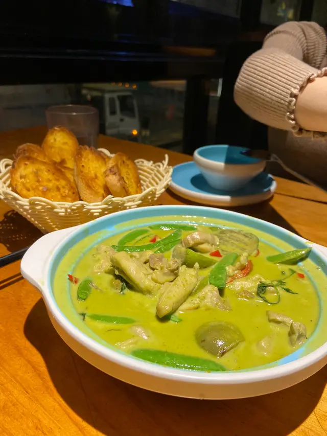 呢排成日睇泰劇所以勁想食泰國野 同朋友約左出去所以就搵左間泰菜🫶🏼今次想介紹一間大份夾抵食嘅泰國菜 適合都朋友聚會一邊傾計一邊食 三個人都只係食左$460 每人二百蚊都唔洗!雞肉青咖哩 $88青咖哩都幾足料 除左雞肉仲有好多荷蘭豆同埋泰國茄子 整體冇咩特別不過不失~蒜蓉包 (跟餐+$30)蒜蓉包好香脆薄餅 $38馬拉盞炒椰菜苗 $88椰菜苗比較硬生 會咬到有啲口攰 如果整得淋身少少啲椰菜苗會好好多同埋入味啲!香葉肉碎煎蛋炒飯 $78肉碎除左用香葉炒 仲有啲豆、洋蔥同埋辣椒一齊炒所以好香 不過唔係好食得辣嘅朋友就會覺得辣左啲熱情果沙冰 $38好有熱帶感覺 一邊飲一邊食辣野岩岩好💛芒果糯米飯 $58芒果好甜而且份量都幾多!糯米飯有兩舊 一舊係普通糯米飯 另一舊係蝶豆花糯米飯 不過蝶豆花其實都係攞個顏色 所以味道都係一樣🤣🤣查看更多