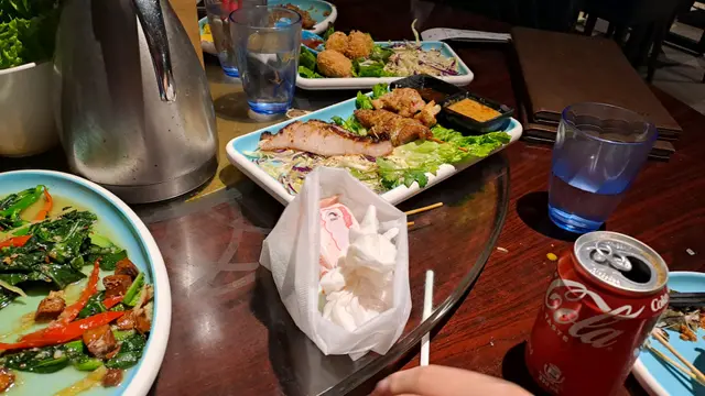 鋪頭位於觀塘工業區,餐廳位置比較偏僻,我諗主要都係做工業業區生意🤣🤣🤣不過勝在鋪頭環境大,啲枱都舒服,適合大班朋友聚餐☺️☺️☺️野食方面叫左馬拉盞炒通菜、菠蘿炒飯、串燒拼盤等等😋老實講幾樣既食物都真係味道普普通通,菠蘿炒飯就正常發揮,而馬拉盞炒通菜都可以,唔會十分鹹🙈串燒反而我覺得d肉有少少鞋口,不過每樣份量就真係好多,我地兩個人完全都食唔哂!以依個價錢黎講就真係大大份,算係幾抵食!!查看更多