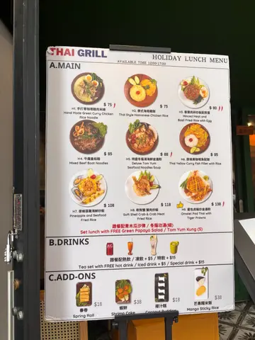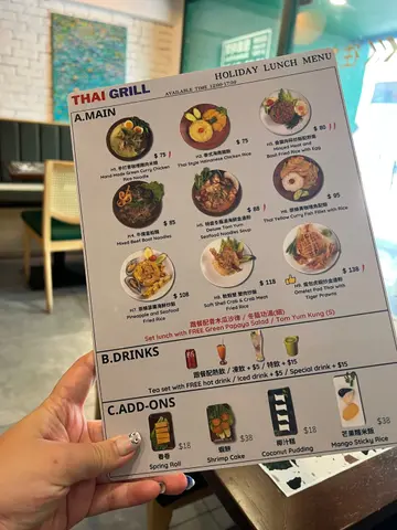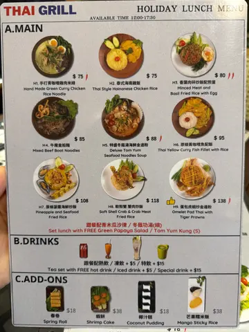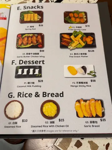🌸原条菠萝海鲜炒饭$108🌟🌟🌟🌟🌟原条菠萝有烤过,菠萝鲜甜多汁;海鲜炒饭配料有鱿鱼须、鱿鱼、虾仁、青口、菠萝粒、肉松、腰果,材料非常丰富,每一口都可以吃到饭及配料。🍀青木瓜沙律🌟🌟🌟🌟酸酸辣辣嘅口感,青木瓜丝非常爽口。🍀粒粒菠萝梳打加$15🌟🌟🌟🌟满满菠萝粒,底部还有菠萝糖浆,加入梳打拌匀后满满菠萝香味。🌸牛魔王船面$85🌟🌟🌟🌟🌟汤底非常浓郁,牛味十足,爽口金边粉份量十足,爽口弹牙牛丸,满满牛肉片重牛味,一口汤一口金边粉非常惹味。🍀冬阴功汤(细)🌟🌟🌟🌟浓郁冬阴功味,配料有菇菌等等。🍀珍多冰加15🌟🌟🌟🌟🌟浓郁椰奶嘅香味,内里还有大树菠萝丝及绿色粉棵,甜度适中。🌸串烧$88🌟🌟🌟🌟🌟鸡牛猪各选两串,鸡肉烤得鲜嫩可口,牛肉烤得非常嫩滑,而且好入味,猪肉也烤得非常出色,每一串都非常可口,再点埋沙嗲酱就更惹味。🌸芒果糯米饭$38🌟🌟🌟🌟🌟鲜甜芒果肉,配搭着热辣辣糯米饭及紫米饭,倒入椰浆更好味。…查看更多