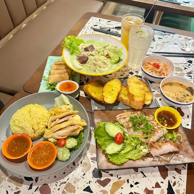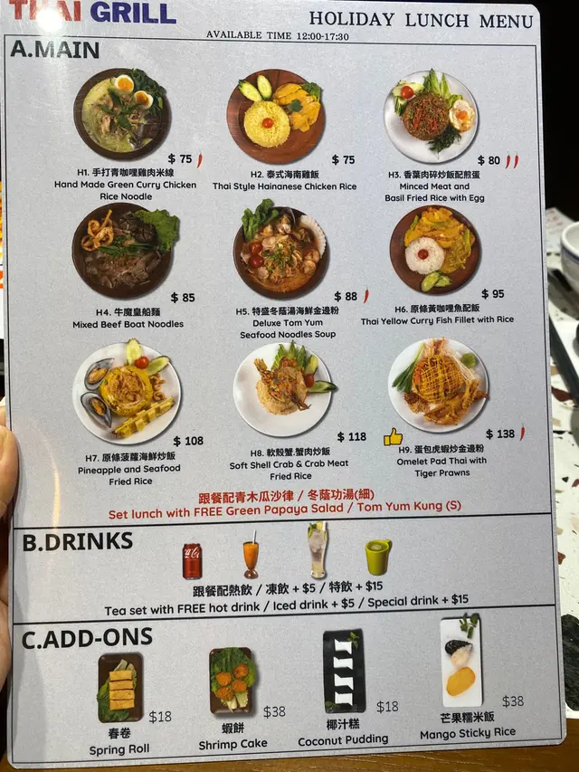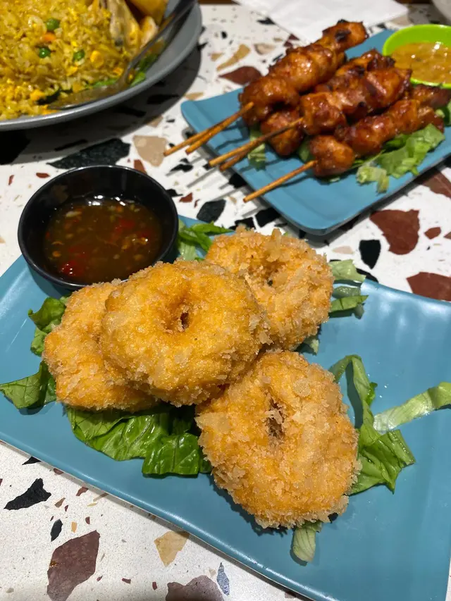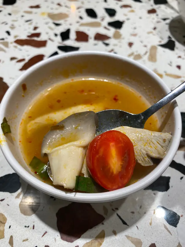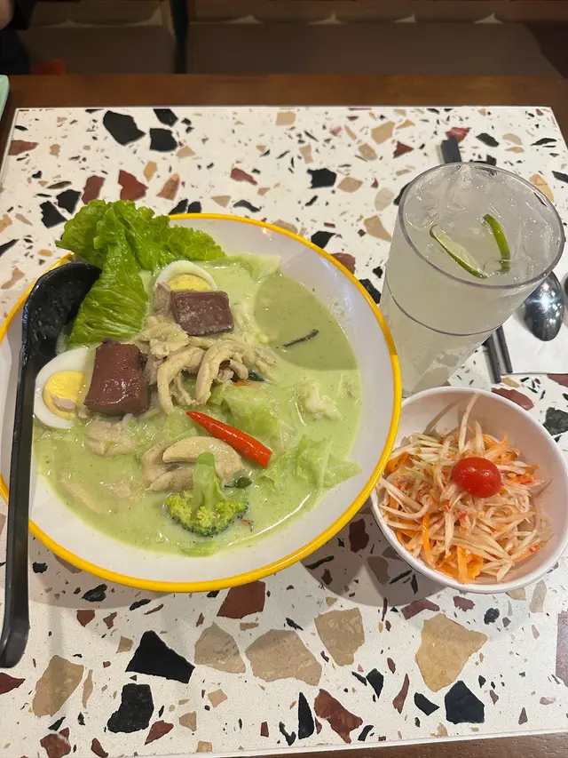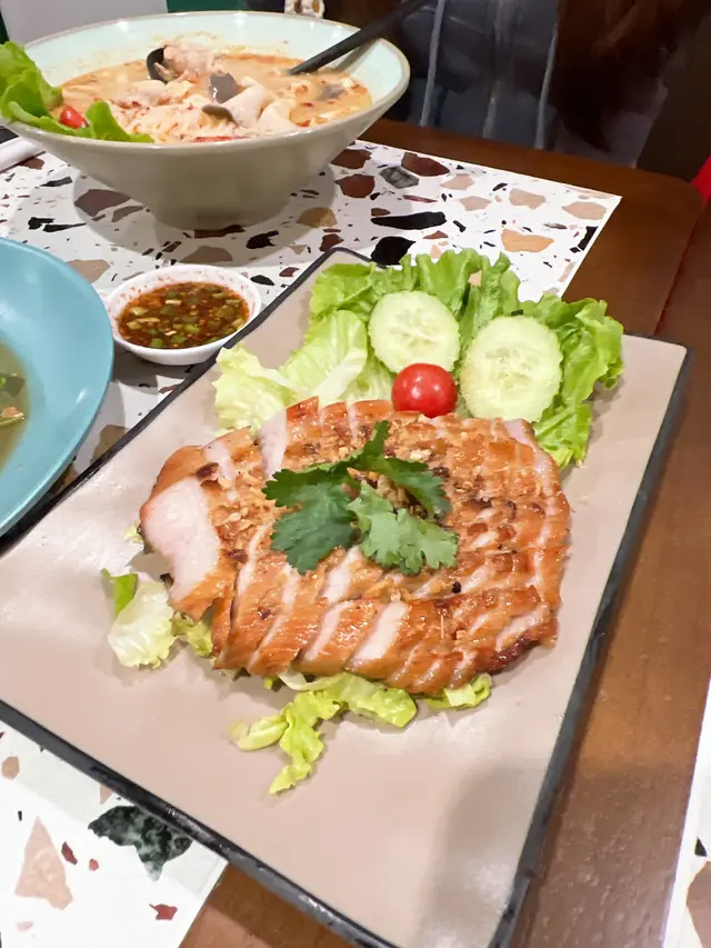 🌸原條菠蘿海鮮炒飯$108🌟🌟🌟🌟🌟原條菠蘿有烤過,菠蘿鮮甜多汁;海鮮炒飯配料有魷魚鬚、魷魚、蝦仁、青口、菠蘿粒、肉鬆、腰果,材料非常豐富,每一口都可以吃到飯及配料。🍀青木瓜沙律🌟🌟🌟🌟酸酸辣辣嘅口感,青木瓜絲非常爽口。🍀粒粒菠蘿梳打加$15🌟🌟🌟🌟滿滿菠蘿粒,底部還有菠蘿糖漿,加入梳打拌勻後滿滿菠蘿香味。🌸牛魔王船麵$85🌟🌟🌟🌟🌟湯底非常濃郁,牛味十足,爽口金邊粉份量十足,爽口彈牙牛丸,滿滿牛肉片重牛味,一口湯一口金邊粉非常惹味。🍀冬陰功湯(細)🌟🌟🌟🌟濃郁冬陰功味,配料有菇菌等等。🍀珍多冰加15🌟🌟🌟🌟🌟濃郁椰奶嘅香味,內裏還有大樹菠蘿絲及綠色粉棵,甜度適中。🌸串燒$88🌟🌟🌟🌟🌟雞牛豬各選兩串,雞肉烤得鮮嫩可口,牛肉烤得非常嫩滑,而且好入味,豬肉也烤得非常出色,每一串都非常可口,再點埋沙嗲醬就更惹味。🌸芒果糯米飯$38🌟🌟🌟🌟🌟鮮甜芒果肉,配搭着熱辣辣糯米飯及紫米飯,倒入椰漿更好味。…查看更多