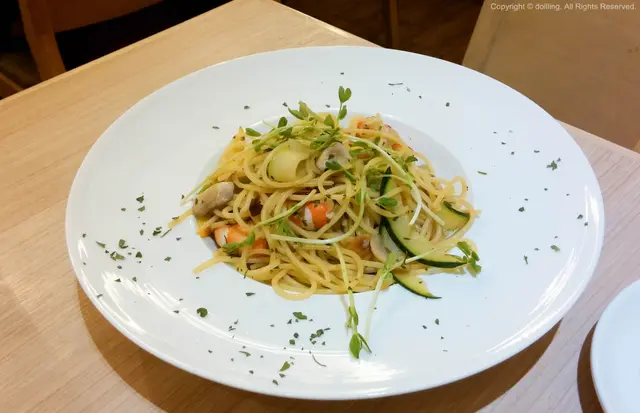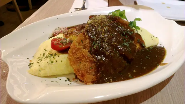 每塊鴨胸中間都有舊柚子,原來柚子暖食都幾好味。雞肉丸蛋包飯,都係好味!啲肉丸好有雞肉味,同埋唔會好似其他餐廳咁溝左好多粉。塊蛋都好滑好正!間餐廳雖然細左啲,所以有啲嘈。但裝飾幾靚幾清新,而且價錢好平(夜晚食個意粉都係五十幾蚊),又多選擇,真係幾好。比較麻煩係當晚只收現金。下次都會再黎食