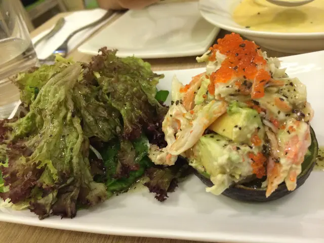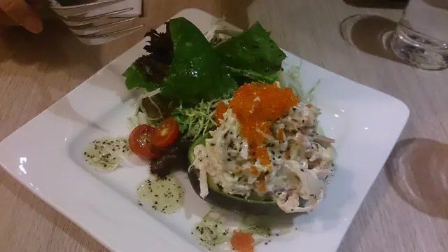 。叫左個牛油果蟹肉沙律、肉醬茄子、雞肉丸蛋包飯同柚子鴨胸(唔係好記得啲名,大致係咁啦)。牛油果蟹肉沙律好食!牛油果好香,真係啖啖蟹肉,相信係人手拆蟹肉,因為食到小小蟹殼碎