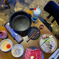 !!!性价比寿喜烧首选!!!舖内好好vibes 1秒置身小日本🇯🇵专人烹调 全程净系负责食食食同食 可以小废物🤤食到好嘢 又可以同老best 吹到水 呢个weekend 真系叉爆电🔋🇯🇵招牌寿喜烧二人餐$659🐮日本国产牛牛颈脊&美国顶级牛颈脊寿喜烧🫕黑松露炖饭牛牛 🐮日月精华加寿喜烧汁 练成的炖饭 好甜好creamy 🤤建议 食洋葱🧅既朋友仔 要加埋落去熬 成个甜度会升级🌟🍶清酒煮鲜贝类汤头无比鲜甜 蚬量好足 🐚配小法包🥖要🦪生蚝+$35抵!本身买一只要$48 但系转就$35有两只🤤海水味比较重 同清爽 💦🍟松露芝士薯条薯条山!!薯条新鲜即炸 店员仲温提我哋薯条好热小心辣口🤣🍋热情果水果茶萨姆红茶茶底好浓 香港人最对野饮最高评价:唔太甜 果味同茶比例岩岩好☕️🍨雪糕梳打波子汽水上面牛奶雪糕好好食!记得要食咗雪糕先 如果唔系就会沉没🥹呢杯会系细细个梦寐以求嘅嘢饮 🇯🇵…查看更多