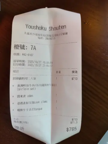 上星期日同朋友出奥运站果头行街醒起洋食商店系利奥坊有分店朋友劲钟意黑松露带佢去试下选择困难最啱就系叫套餐拣左澳洲M9和牛西冷➕️美国顶级牛颈脊寿喜烧黑松露炖饭之前去过长沙湾分店,已经觉得服务一流店员系会帮忙烧,我地负责等食美国顶级牛颈脊牛味浓郁,索晒寿喜烧个汁一流澳洲M9和牛西冷大大块,蘸埋生鸡蛋sir落喉咙,一d都唔夸张食完🐮梗系要食埋d蔬菜平衡下,等食既时间,其他菜都陆续嚟小食:清酒煮鲜贝类大大只鲜甜肥美,无沙份量十足,个汤都饮埋仲跟埋面包比你蘸汤食鸡皮饺子鸡皮脆卜卜,咬开好juicy 🍟松露芝士薯条面头仲有芝士盖顶,薯条外脆内软松露酱汁好得,朋友话唔够喉要拎多碟话咁快娃娃菜、冬菇、豆腐、洋葱就已经煮好香甜既寿喜烧汁令到一份平平无奇既蔬菜升华左去另一个层次,最正既系娃娃菜饮品:🍑蜜桃荔枝茶酒 (含酒精) $ 58蜜桃×酒都几夹,大大杯🍍菠萝百香果乳酪乌龙 $ 40菠萝味突出,整体都唔错最后就系黑松露炖饭,加埋蛋落去,收汁就食得黑松露好香,朋友超开心呢个饭绝对系精华所在~完美既句号…查看更多