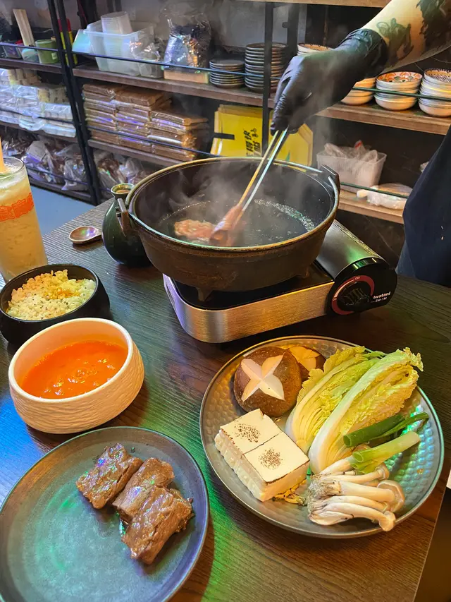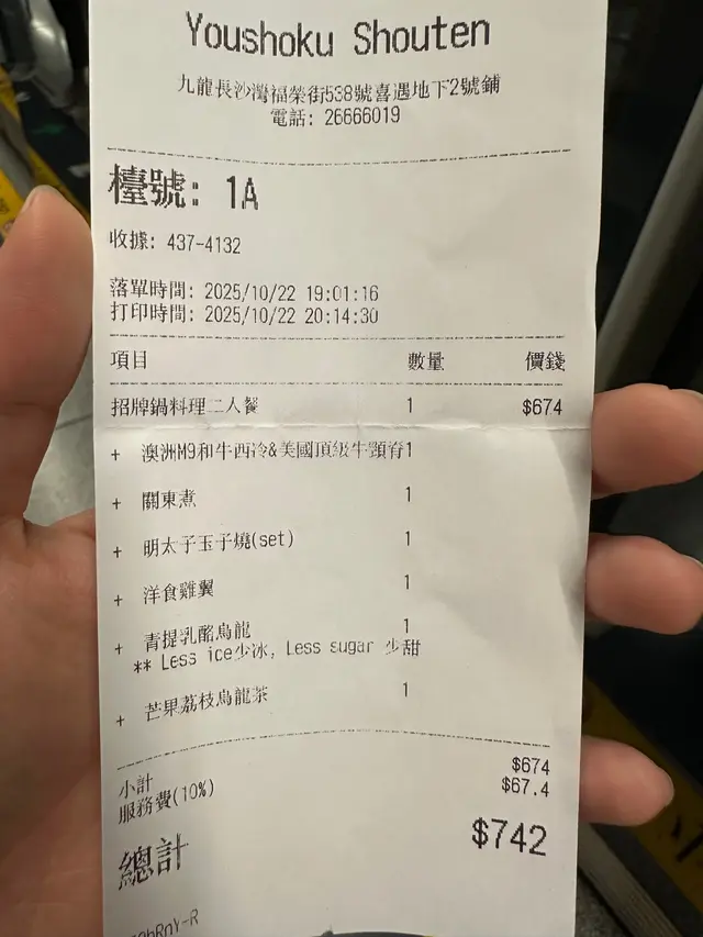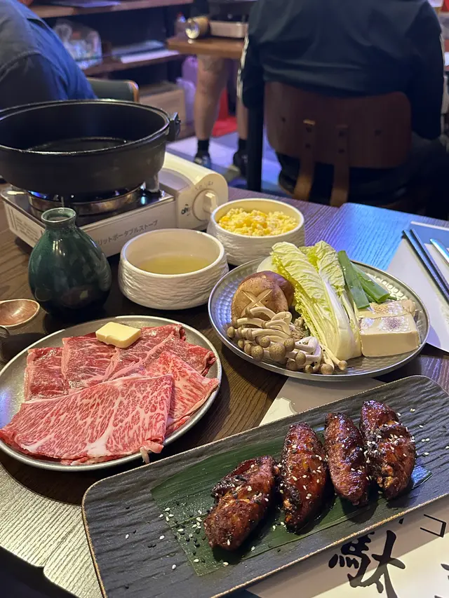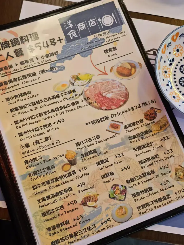 上星期日同朋友出奧運站果頭行街醒起洋食商店係利奧坊有分店朋友勁鍾意黑松露帶佢去試下選擇困難最啱就係叫套餐揀左澳洲M9和牛西冷➕️美國頂級牛頸脊壽喜燒黑松露燉飯之前去過長沙灣分店,已經覺得服務一流店員係會幫忙燒,我地負責等食美國頂級牛頸脊牛味濃郁,索晒壽喜燒個汁一流澳洲M9和牛西冷大大塊,蘸埋生雞蛋sir落喉嚨,一d都唔誇張食完🐮梗係要食埋d蔬菜平衡下,等食既時間,其他菜都陸續嚟小食:清酒煮鮮貝類大大隻鮮甜肥美,無沙份量十足,個湯都飲埋仲跟埋麵包比你蘸湯食雞皮餃子雞皮脆卜卜,咬開好juicy 🍟松露芝士薯條面頭仲有芝士蓋頂,薯條外脆內軟松露醬汁好得,朋友話唔夠喉要拎多碟話咁快娃娃菜、冬菇、豆腐、洋蔥就已經煮好香甜既壽喜燒汁令到一份平平無奇既蔬菜昇華左去另一個層次,最正既係娃娃菜飲品:🍑蜜桃荔枝茶酒 (含酒精) $ 58蜜桃×酒都幾夾,大大杯🍍菠蘿百香果乳酪烏龍 $ 40菠蘿味突出,整體都唔錯最後就係黑松露燉飯,加埋蛋落去,收汁就食得黑松露好香,朋友超開心呢個飯絕對係精華所在~完美既句號…查看更多