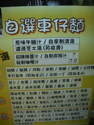 上星期在下刻意去车品品,吃她一个车仔面𩠌,另加一些推介食品。今趟去了荃湾,在开心餐厅吃过蛋牛治,却耳犹未尽,在荃湾游走一会后,折返兆和街。为什么会去兆和街?就是在下突然间想起了条街有间小店,专吃面点和小吃,叫做「津满」。在下一直都曾经无数次与它擦身而过,不是去了别家食店,就是不想吃车仔面,今趟既然尝过车品品的车仔面𩠌,为何不可以在这里吃个车仔面𩠌?既然来到门口,从门上的餐牌看,原来以芝士味做一个汤底,还有的是清汤,牛腩汁和秘制咖哩汁,看起来似乎真的好好味咁,就不妨推门入内,就把芝士汤试试看吧!入了去,拿起了车仔面的纸条,当然点选了萝卜鱼蛋和红肠这么大路的车仔𩠌,而汤底就来一个芝士味。其实在下既然选定了芝士味的汤底,就索性就不用再点饮品,可是当点选了芝士汤底以后,店员却说要索价另加十个大洋,无所谓啦。宏观店舖,墙上贴满了海报和餐牌,而且佳位全是以橙色做主色,甚为悦目光泽,也使店舖看来也较Sharp。而坐位门也几宽敞的,坐得也较舒适。车仔面𩠌已经上桌,萝卜鱼蛋和红肠浸在黄色的芝士汤里面,而且也散发著芝士的浓郁味道,呷一口汤,实质是很强烈而浓郁的芝士味,而萝卜却未够腍但却有咬口,口感甚丰富,可惜有个别萝卜不够新鲜而带有苦味;红肠煮得很腍,而边位却不够脆;另外鱼蛋亦是很腍,但欠缺弹牙而且有点粉,鱼蛋稍为久佳一点。虽然汤底是浓郁的芝士味,但却也可以尝到汤底本身也是清汤呢!整体而言,车仔面𩠌很腍,但萝卜却不及车品品的那么清甜与腍,而值得一赞的却是个汤底,是没有味精的汤底。服务也不见得很差吧。…查看更多