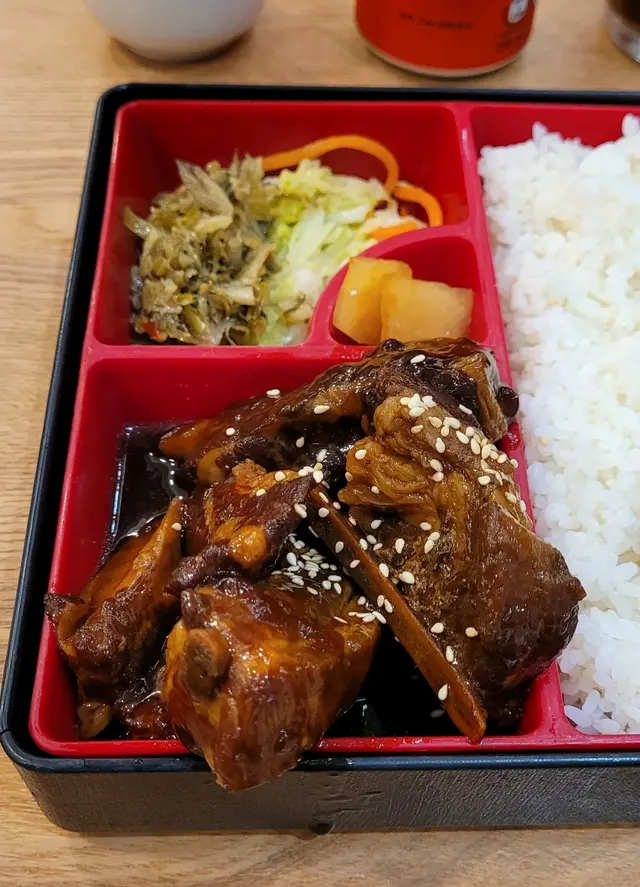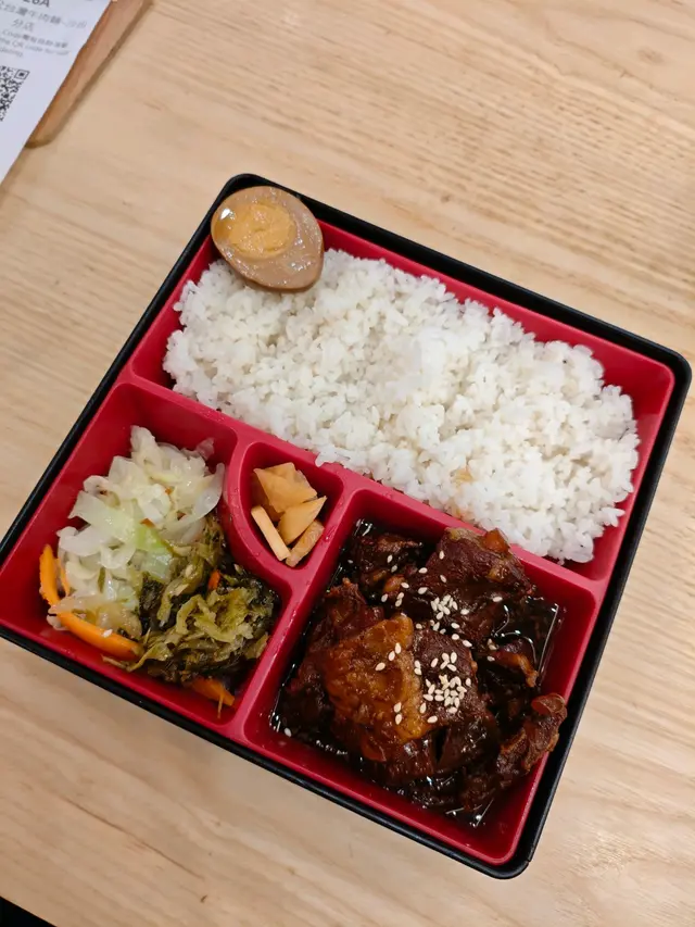 自己食飯就揾一間自己鐘意食的台灣餐廳。午市人流不多,一眼望入餐廳有很多位置選擇。座低後就叫左野食。這個台式豬軟骨便當賣相吸引,豬軟骨雖然炆得唔夠腍,但醬汁濃郁帶點甜味,配白飯一流!配菜有酸菜、炒椰菜同半隻滷蛋,味道豐富又有層次,份量剛剛好。另外,珍珠鮮奶綠用大杯陶瓷杯上枱,奶綠味道香濃順滑,奶味同茶味平衡得幾好。珍珠煙韌有咬口,唔會太硬或者太淋,可能因為熱飲,實在太甜了,我只是飲左一半就沒飲。整體來講,性價比高。但對於剛出返黎打工的我,這個午餐比較貴,仲有 10%服務費,一次半次還可以,日日食就不會了。查看更多