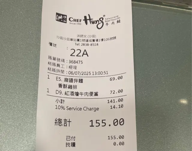 呢一間已經食過好多次,因為性價比高,價錢平、而且份量多,加上佢哋嘅位置方便就喺沙田站上蓋,所以我已經唔記得自己食過幾多次~今次係食午餐、兩個人兩份午餐都係$160埋單,有埋嘢飲,所以我覺得係性價比好高,我最鍾意食佢哋嘅鹽酥雞,外皮炸得香脆,粉漿亦都好薄,雞肉唔會嚡口,肉質仲係滑,另外佢哋嗰個肉燥飯亦都係好好味,唔會過分鹹,所以整體我都好鍾意食~台灣牛肉麵:我亦都食過好多次,我覺得今次個湯底淡咗,平時食唔係咁,希望佢哋會改進返,平時嘅湯底係味道濃郁好味~查看更多