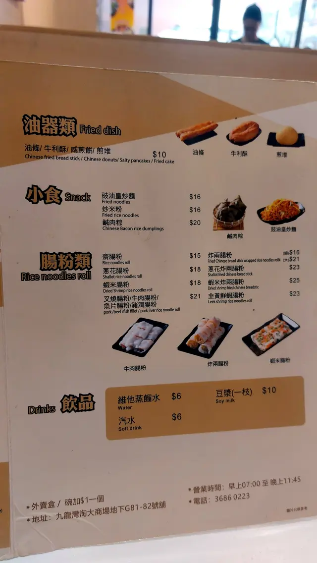 洪記粥品 (淘大商場1期) (九龙湾) 网址: https://s.openrice.com/QrLS0lcmC00 地址: 香港九龍灣牛頭角道77號淘大商場1期地下G81-82及G96-97號舖 电话: +852 36860223