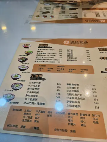 妹妹身体不适,想要吃粥,很少去粥品店的我只想起位于广福里的这家洪记粥品。简简单单的只点了状元及第粥及黄沙猪膶粥,没点其他食品。黄沙猪膶粥,猪膶份量又多又大块 !若猪膶煮得过熟,质感就会变得粗糙而不好吃。这里的猪膶不至于好粉嫩,但亦没有煮得过熟,口感仍带点爽脆。粥面上几乎没有黄油,少了阵油香味。状元及第粥,配料有猪膶、猪肚、粉肠、肉丸及肉片,应有尽有,每款都有2~3件,不会因配料款多而只得一件半块。明明下单时讲明要走青,单据亦有显示,偏偏这碗完全没走青,有很多青埋藏在粥内。论价钱的话,算是抵食,而食物质素仍可稍稍改善。…查看更多