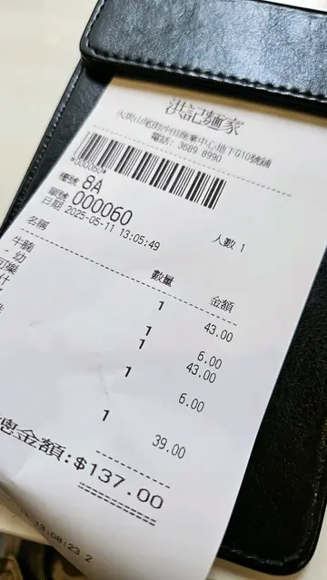 我哋一家假曰一定要出去食或叫外卖,所以今日嚟咗依度,今曰出奇地要等位,等咗5 分钟到就有位la! 我哋叫咗牛腩,崩砂腩,韮菜鲛,鱼片头河,崩砂腩同牛腩差唔多,但崩砂腩贵十几蚊,所以牛腩性价比高d 👍🏻! 其余各样嘢都ok.. 正常发挥,系火炭有得食吓呢款面家,已经算唔错😌