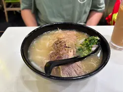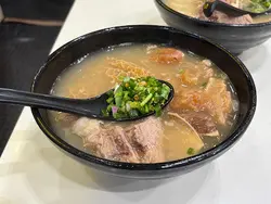 又是一个吃面的时间了。真的,中午时间,要吃东西而又不想吃太多时,食面是一个绝佳选择。而这一天,我带小孩去参加一个在马鞍山体育馆的活动,中午放饭时,我们决定吃面。就近,又可以舒适的坐下,就有这《洪记面家》了。这《洪记面家》算是一家主打牛腩的面家,所以,大家吃的面都是以牛腩为主题。那天,儿子点了一份牛腩河。牛腩看起来虽然很瘦,但吃入口的感觉是一丝丝,而且是很腍的。有挂齿的感觉但又不会黐牙。河粉虽是幼身的,但吃落口仍有爽感觉。贪心的我,来了一碗牛三宝粗面。牛三宝,包括牛腩、牛筋同金钱肚。汤底看起来好清,却充满了牛肉的香。再者,他们的牛腩、牛筋同金钱肚,真的是又腍又入味啊。女儿最爱吃的,是云吞。所以我点了一个云吞面给她。粒粒都有人虾,粒粒云吞都鲜美可口。只是我觉得,那大地鱼的香味不太足够而已。大家的话跟餐的饮品都是奶茶。冻同热的好味道。茶味香浓,口感香滑。可以说,这店的茶水师傅,是有点功架的。开心的一个家庭午餐。虽然只是每人一碗面,但吃到是好味道,也感觉到是一间舒适兼卫生的饮食地。这《洪记面家》,的确是一间美妙好味道的面食店。…查看更多