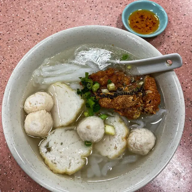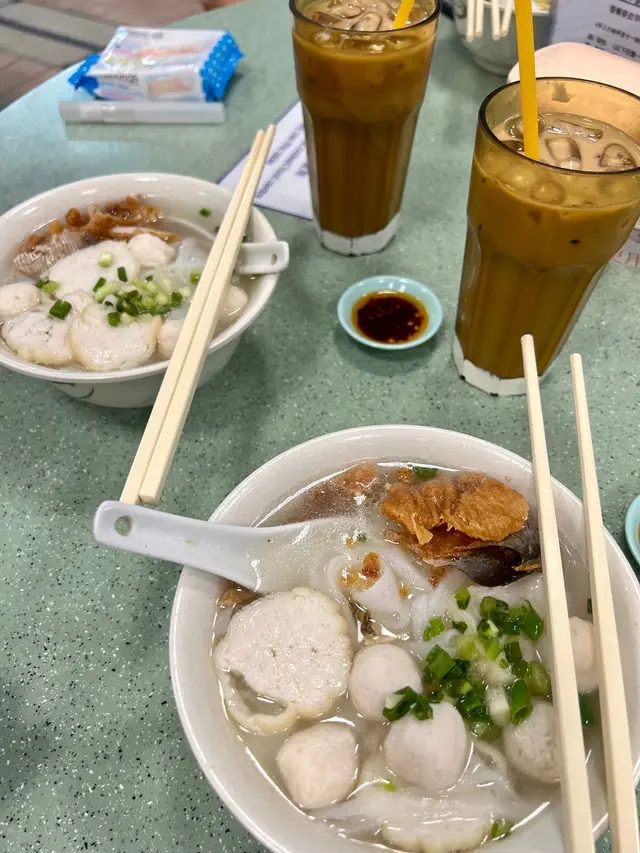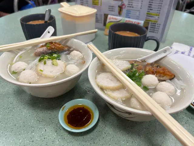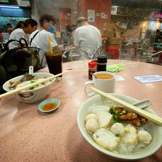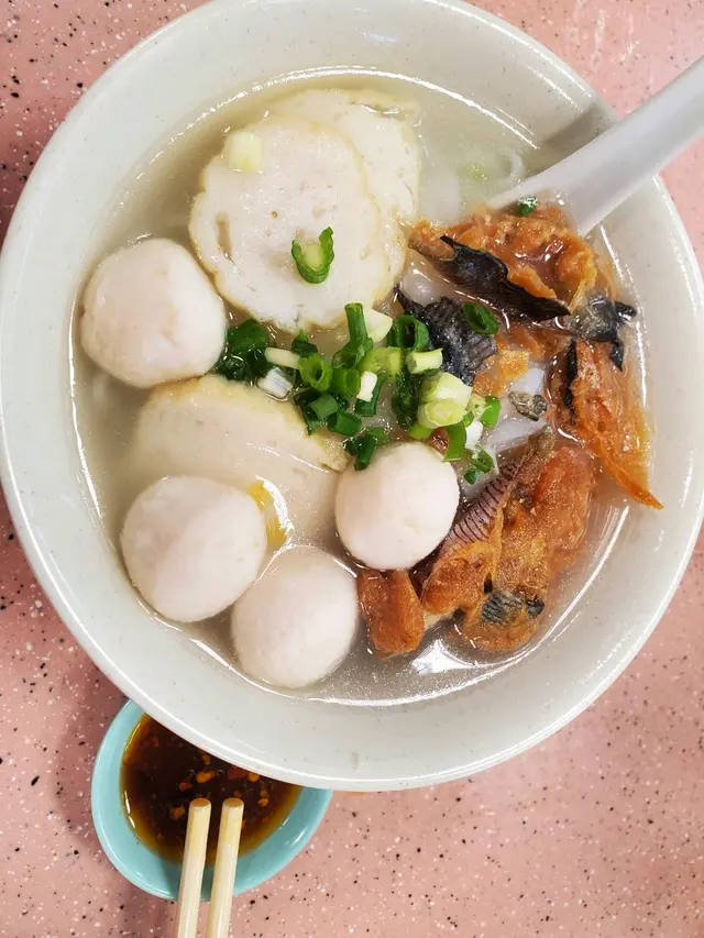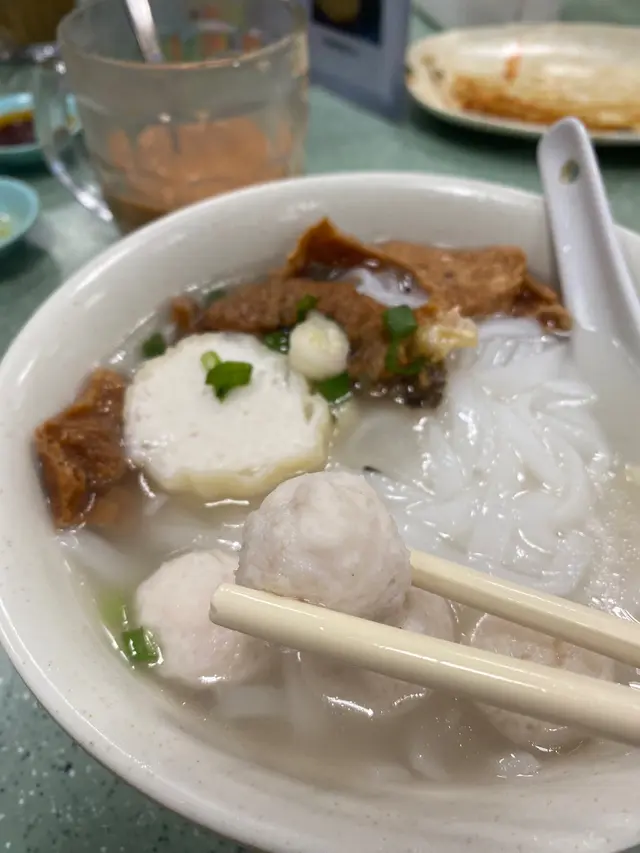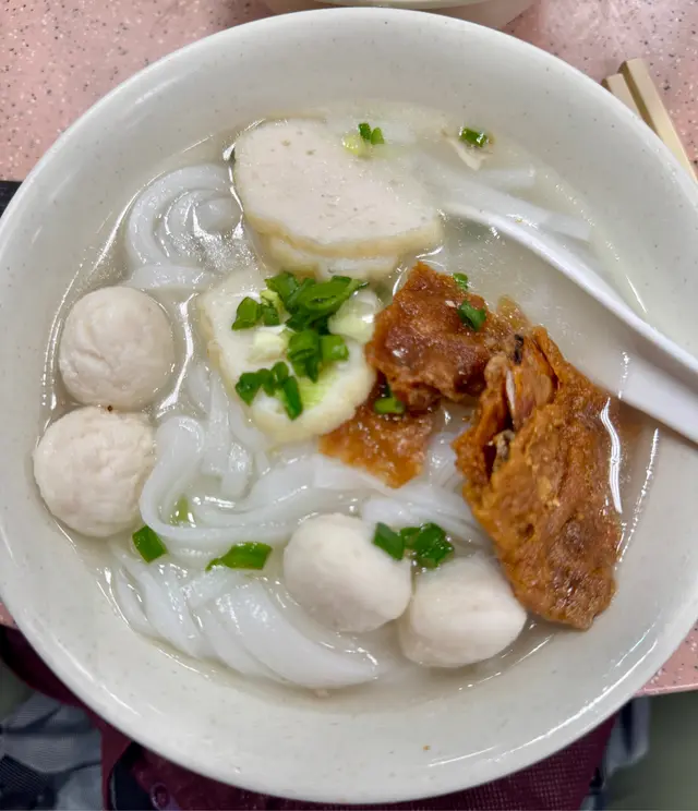 入開大埔,自然去食我至愛的「魚蛋河」,魚蛋不是平常食開白滑Q彈那款,而是比較緊實帶有濃濃魚香那種。🤔但一碗只有五粒魚蛋、兩片魚片及兩嚿魚皮,而魚皮比普通的要厚身,浸在湯河中也不易變腍,而且帶有濃郁的魚油香味,好吃;但價錢$36/碗,都咪話唔貴,一個人自私食兩碗,都唔嫌多。😋人流不斷,平日時間未到中午便要關燈預備休息,遲少少來都分分鐘無得食,真係唔講得笑。😱同枱食客告知,試過人多時,一個座位要等上一個小時有多,假日來就要有心理準備才好來呀;而且必須早到,不是要白行就不好了。😬#魚蛋河 #魚片 #炸魚皮#河粉#洪記(香港)地址: 香港大埔鄉事會街8號大埔墟街市及熟食中心2樓CFS4號舖…查看更多