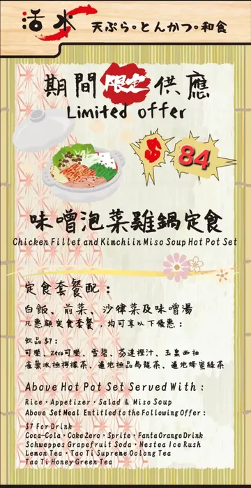 本来想试隔篱冲绳料理,但朋友话试过,最后拣咗【活水和风食堂】。呢区日式餐厅选择唔算多,见到有期间限定天妇罗冷稻庭乌冬,就试吓啦😆!🍤期间限定天妇罗冷稻庭乌冬($82)沙律配日式芝麻酱🥗,味道普通。天妇罗拼盘有炸软壳蟹🦀、炸大虾🦐、炸南瓜🎃、炸蟹柳🦀,炸浆唔会太厚,保持到酥脆口感,亦唔会油腻。软壳蟹正常发挥,大虾虽然唔算弹牙但胜在有虾味,南瓜炸完依然甜糯,蟹柳就中规中矩。稻庭乌冬🍜弹牙烟韧,冷食特别爽滑,配天妇罗酱汁味道更丰富。喺呢区嚟讲,呢间日式餐厅水准正常,天妇罗炸得唔过火,价钱合理💰,如果想食个简单又稳阵嘅日式定食,都可以考虑😌!…查看更多