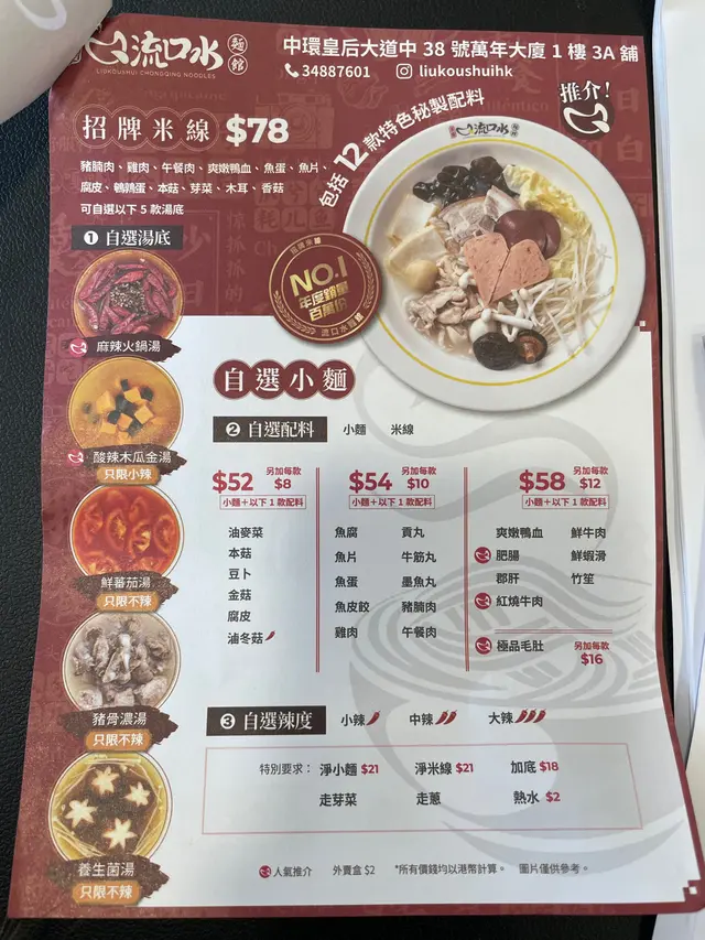 流口水重慶麵館 (萬年大廈) (中环) 网址: https://s.openrice.com/QrLS01y4600 地址: 香港中環皇后大道中38-48號萬年大廈1樓3A號舖 电话: +852 34887601