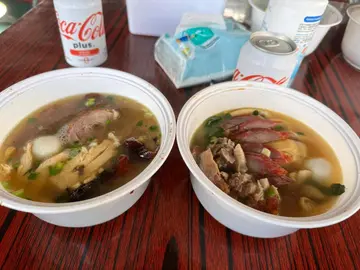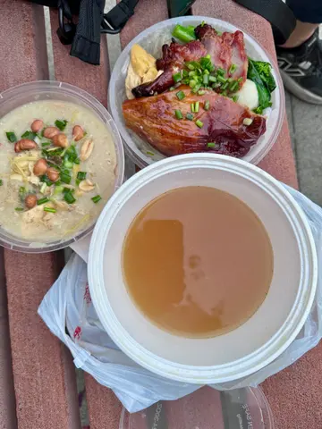 之前新闻卖流记艇仔粉换咗新艇同长期泊香港🇭🇰仔渔人码头⛵️我先知原来真系有艇仔粉,仲要系全港第一☝️个水上牌照,全香港🇭🇰得两个水上牌,第二个喺屯门。搭巴士🚌经薄扶林道去到香港🇭🇰仔中心,过隧道去海旁转右,行大约5分钟就揾到。要过一小段桥先到收银处,艇仔粉$40,转鸭脾或鸡脾🍗就加$20,一场嚟到,就转鸭脾,要濑粉,问收银阿姐去边度食,阿姐话去公园,我怀疑🤨可能🤔因为得食物🥘制造🧑🏭厂牌。艇仔粉等5分钟就有,艇仔阿姐煮完喺艇上递俾收银阿姐再递俾我,我就上返岸拎咗去海旁公园食,感觉上冇乜风味。打开,𩠌粉分离,𩠌有鸭脾、鸡🐓、叉烧同菜,皓足料,倒𩠌落粉有难度,因为皓重同埋下面汤皓热。汤底浓,系大地鱼汤,不过我觉得唔洗落胡椒粉加味,濑粉皓皓食,鸭脾够滑索咗汤都皓食,菜心都鲜,鸡🐓同叉烧一般