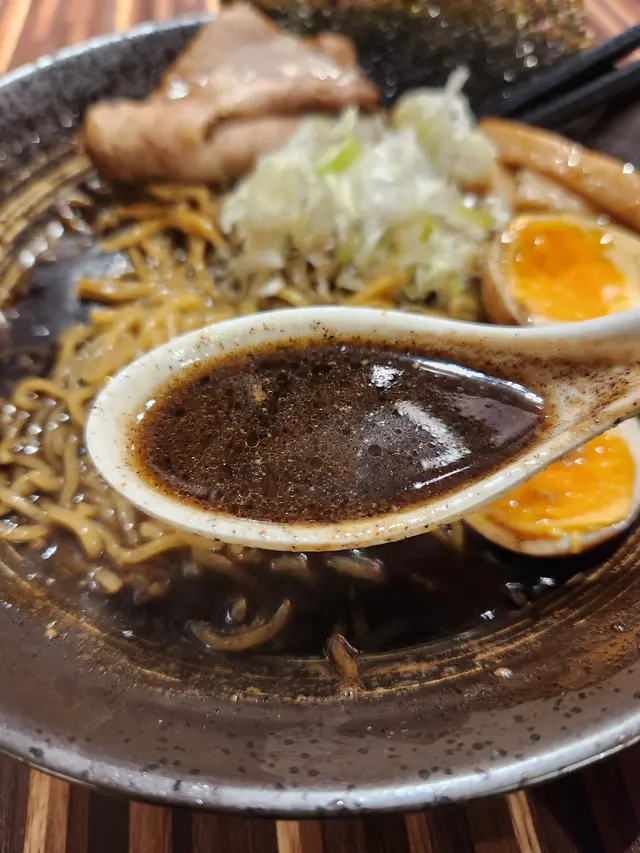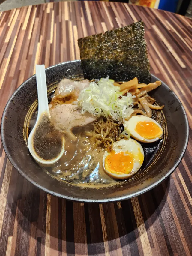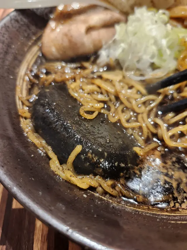 《浜滝》自家製黑蒜拉麵🍜 + 鮟康魚肝📍九龍城福佬村道59號地下A號舖呢間店雖然係距離我屋企最近嘅拉麵店,但對上一次幫襯已經係好多年前嘅事。之前食我就唔覺得特別好,最特別都係佢加入左一塊石頭,碗麵一路食一路d湯仲keep到好夠熱,今日一於重溫下。《自家製黑蒜拉麵🍜》香味 (4/5)一如所料,黑蒜香味濃郁,幾香嘅。湯 (3.5/5)都係以黑蒜味道主導,豚骨味就差不多被蓋過晒,不過動物系嘅鮮味都係明顯,鹹甜適中。藉得一提係佢成個湯都係黑色,唔係上面得層油咁簡單,應該同個底湯有刻意blend過。麵條 (4/5)麵係細麵,有d似食札幌拉麵嘅基本配置咁,曲麵,偏硬,麵色偏黃,只係粗度不一樣。我就覺得個麵幾特別,唔係道道都配呢款麵,同個湯都幾夾。配料 (2.5/5)豬叉燒雖然個樣係正常,但係無論質感同肉味都係弱,中下。筍就正常,有調過味,勝在量多。溏心蛋又係較弱,過熟,蛋香麻麻,調味就正常。另外加18蚊有份鮟康魚肝,味道正常,有燒過。呢份魚肝嘅滿足感比碗拉麵仲要高。整體 - 又係屬於經過食碗都 ok 嘅級別,70分左右。如果你問,塊熱石有冇為碗麵加到分?我就認為些點啦,印象中以前食嘅時候,會多左陣焦香味,但今次就沒有,只有對湯嘅溫度有點加分啦。…查看更多
