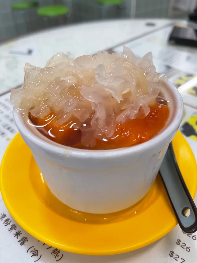見到係傳統甜品就行入去,坐低見係米芝連就放心叫咗2碗最傳統嘅(1)冰花燉蛋(熱)同(2)馬蹄沙(凍)!熱辣辣嘅燉蛋一到,下?陣味咁怪嘅?好似落咗雲呢拿油咁嘅?一落匙羹,下?咁實嘅?夏天都叫熱嘅係為咗嗰種滑滑溜嘅質感!放入口,下?酸嘅?(唔通我搞錯?)再食多啖,真係酸架喎!(同行人士都有試架,仲話可能係特色呢)問阿姐:請問你地係咪落咗檸檬汁架?阿姐話:吖,我真係唔知喎!(叫咗個阿伯嚟-唔通係老闆?)問阿伯:你哋有冇落檸檬汁架?阿伯秒回:冇,冇檸檬汁!我驚訝回:下,酸架喎!阿伯停頓再回:係醋!落咗醋架!好,好安心繼續食,都係覺得味道同質感都怪怪的!上網搵吓食譜先,唔通米芝連先咁整?(唉😔 總之發現其實係唔可能落醋啦!雖然我個人本身好有衣食,都立即停食,其實都就成晒….)又話係傳統甜品嘅?冰花燉蛋都整成咁?冇下次!事後我個胃就開始痛,個口仲keep住有陣酸味。查看更多