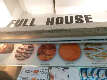 之前去韩国旅行,无试到紫菜包饭,就openrice看下有咩餐厅系香港可以食到,就揾到呢间啦。一去到西九龙中心8楼foodcourt,就见到好多食肆,以前真系唔知,咩国家的都有。浪漫满屋系其中一间小店,里面全部都由老板打理,他系地道韩国人,我落单的时候他态度好亲切,可能因为他以经黎香港多年,广东话能听能讲,虽然都唔系超级流利。我同朋友分别叫左紫菜包饭+炸年糕同紫菜包饭+炖牛肉。紫菜包饭比我地预期中细份好多,不过口感唔错,有种自家制的感觉,都系火腿萝卜,材料都新鲜,不过份量真系要大粒d啦。炸年糕真心好食,外皮脆脆的,有得选辣同唔辣,唔辣就加沙律酱,我林都系新食法。炸年糕餐盛惠$26,算便宜,所以份量配上价钱,我觉得还可以。炖牛肉的牛肉比较厚身,d汁都好味。仲有因为老板即场制的,所以落单后可能等得比较耐。