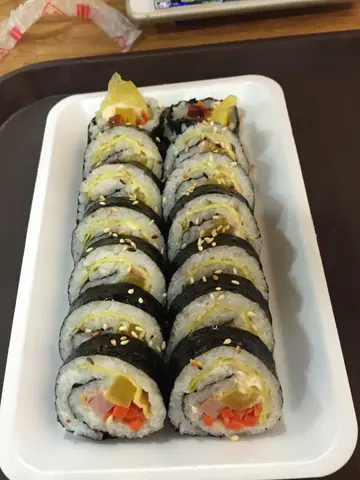 呢间舖头细细地,喺西九龙美食中心唔系太显眼,老细系一个正宗嘅韩国人哈哈,所以对佢嘅韩国美食好有信心😂😂😂今日叫咗一个韩国紫菜包饭🍙🍙,虽然好简单,但系老细都好俾心机包,食落去好香麻油味,啲夹系中间嘅配料都好好味,白饭软硬适中,🤩🤩🤩重要嘅系佢价钱好平,🍘🍚以往出去食嘅紫菜包饭最少都要5-60蚊1卷,但系呢度$25就有大大条😋😋,仲有味道非常之好,好似真系去咗韩国咁样哈哈😚😚😚