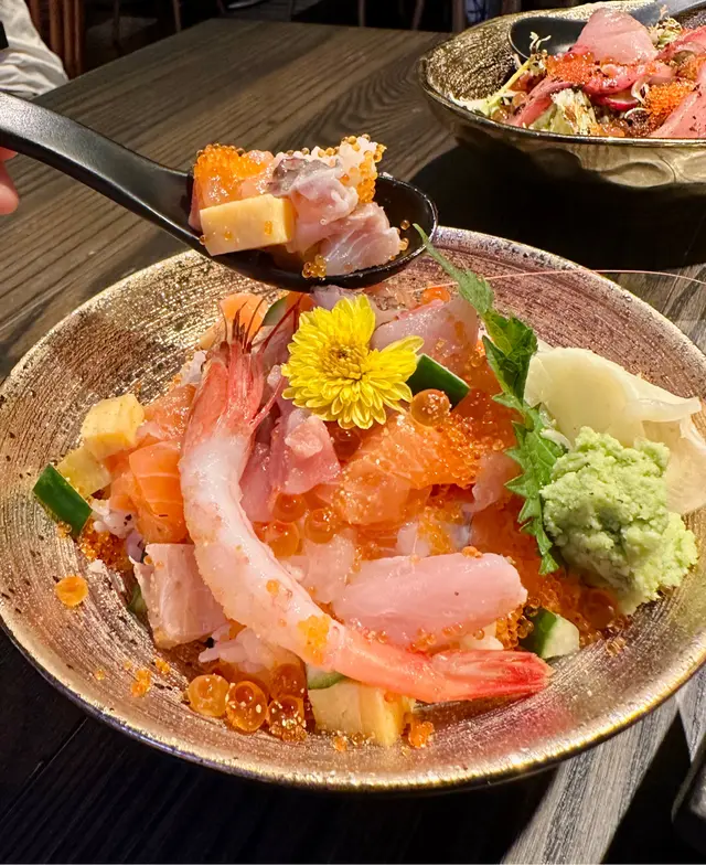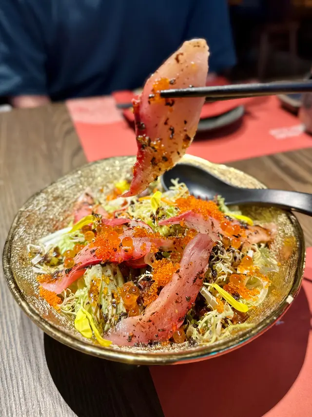 一踏進這家餐廳,就覺得自己好似走入咗一個日本小街。🎐嘅氛圍令人仿佛身處異國。首先嚟咗個石鍋和牛蛋黃丼,熱辣辣嘅石鍋底下蓋著滿滿嘅和牛片,焦香撲鼻,仲有個蛋黃,咁啱準確咁坐係中間,淋上嘅芝麻令整碗丼飯香上加香,好惹味。和牛嘅香味真係撲面而來,軟滑得嚟肉質又好,粒粒分明嘅日本米,同佢地完美匹配,口感一流!再黎個辛口明太子稻庭冷烏冬,咬落去爽彈彈,微辣嘅明太子加埋爽口嘅烏冬,鮮味十足,冬烏香滑,食落又涼快,正!🍜點都唔可以錯過個甜酸炸蝦卷,外皮微脆,蝦味濃郁得嚟唔油膩,秘製甜酸醬帶點神秘嘅感覺,真係惹味到不得了。至於海鮮日式茶碗蒸,滑嫩得黎有驚喜,食落去真係有種溫暖嘅感覺,海鮮鮮甜,每一啖都充滿驚喜。最後個炸日本小權淮山魚餅,外皮炸到剛剛好,入口即化,同淮山嘅結合真係入味!整體黎講,呢度嘅食物,無論係賣相定係味道,都令人讚賞不已,絕對係黎呢邊必試嘅好去處。👍查看更多