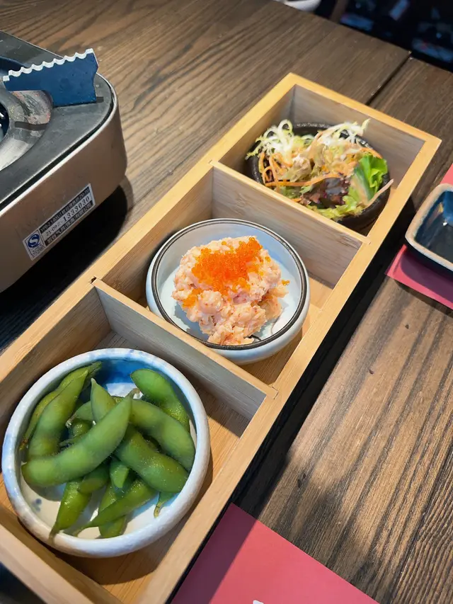 見到經openrice訂位,主餐牌(刺身壽司除外)有半價優惠,就試下,環境唔錯,唔多人,而且坐得唔迫,但冷氣有啲涼。見到有半價,就揀左唔少野,試左串燒, 魚餅, 芝麻雞翼同埋豚肉壽喜燒。串燒唔濃,都好好食,食左帶子, 豚肉番茄,番薯仔雞軟骨,幾隻串燒都好食,而魚餅係淮山魚餅,所以質地同魚蛋嗰隻魚餅唔同,都幾好食。最後點左個豚肉壽喜燒,但佢而家無得比你自己整,餐廳會整好晒攞出黎,所以享受打邊爐既就未必滿足到,不過都幾足料,有好蛋豚肉,豆腐,菜同埋菇,仲有粉,所以都夠飽。但湯底較清淡。整體野食唔錯,有半價好抵食。查看更多