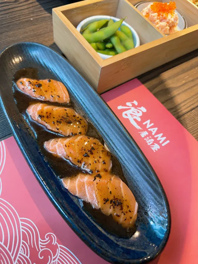 🌸🍶 浪.居酒屋 (Nami Izakaya)的環境以東京的傳統居酒屋為設計藍本,主要採用紅色和深啡色的木材,展現出江戶時期的日式風情。囡甿黎到都話櫻花樹好靚,店員就安排了我們在櫻花樹下享受美食,好貼心~!因為我們帶著年長的家人和幼小的孩子一起來享受晚餐,所以食物的選擇主要是熟食。我們點了玉子壽司、豚肉涮涮鍋、沖蠅胡麻蟹肉冷麵、天婦羅丼和西京燒等美食。每道菜都非常精緻而且份量十足,無論是大人還是小朋友都吃得非常滿足!🍣🍲🍤玉子壽司的口感鬆軟,豚肉涮涮鍋的湯底鮮美,沖蠅胡麻蟹肉冷麵清爽可口,天婦羅丼的酥脆口感和西京燒的獨特風味都讓我們大呼過癮!如果你想要在櫻花樹下享受傳統居酒屋的美食,浪.居酒屋絕對是一個值得一試的好選擇!快來品嚐這裡的美食,你一定不會失望!🌸🍶👍查看更多