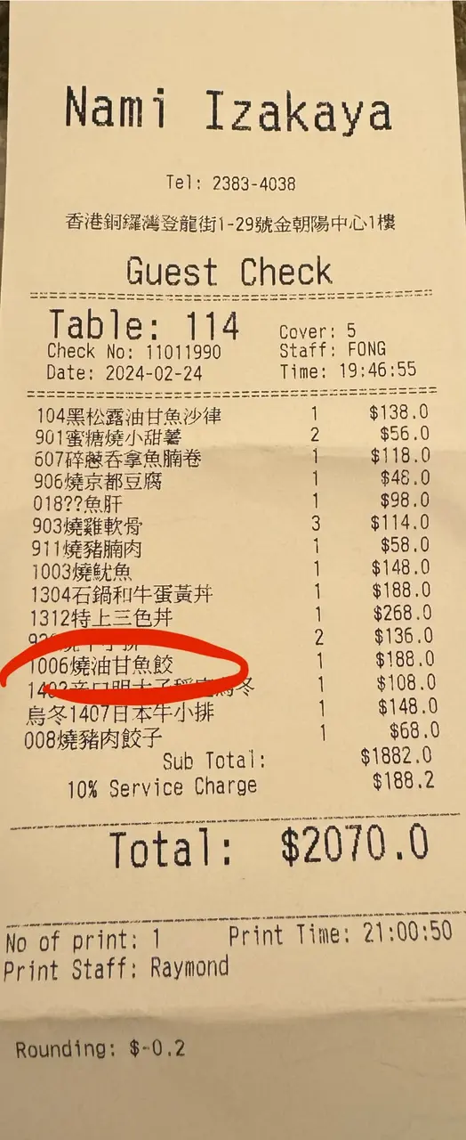My friends and I finished our meal for about 10 mins already, and then a male staff (he looks like the manager there) brings over a plate of fish and  said  that I ordered it. I said I didn't order this dish, so he started giving me attitude, flips open the menu in front of me and said I ordered this dish, and said he had confirmed with me before. I really didn't want to argue,  since we already finished our meal and wanted to leave, so I told him to pack it up for me. While he gets me the bill, I could still hear him still talk about the plate of fish. So I told him, why are you giving me this attitude when you can't even take orders correctly? And why does a small plate of fish take more than 30 minutes to make? It doesn't make sense at all.......He said that I have no common sense (in a very rude tone), and said people who eats Japanese food knows that oven-baked fish takes more than 30 minutes to bake........ He's ridiculous, the fish is the size of my hand. He needs to learn his basic manners from the beginning before he can serve at a restaurant, speaking to customers in this way is not acceptable. 查看更多