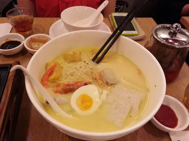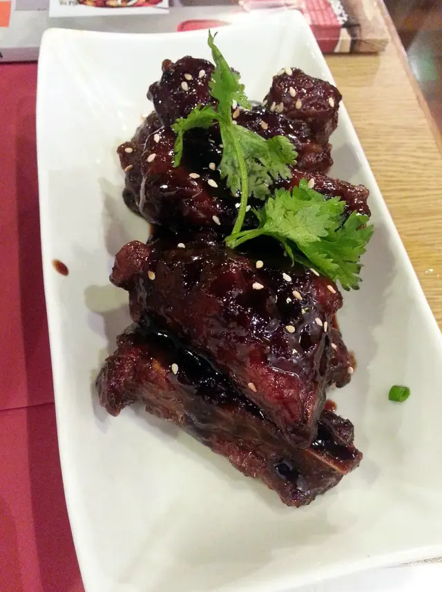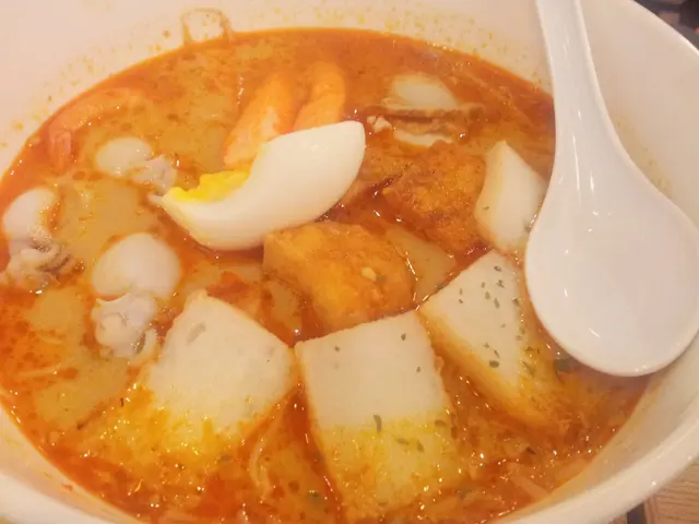 被外面的餐牌所吸引, 忽然間諗起在新加坡時食的叻沙, 想尋找翻當時的味道.....!! 點菜後送上的茶, 一陣果香味, 飲得出不是茶包沖的果茶, 因為無澀味, 見壺蕊內放的是茶葉, 問待應得知這是荔枝茶, 飲掉一半時, 服務員好快會加水, 食飽後都加了兩次水!! 海鮮叻沙(摻摻) ~ 即米粉+麵各一半, 唔辣味道一般, 唔特出的叻沙, 早知試海南雞飯...始終都係在新加坡時食o個間惹味好多, 尋找失敗...!! 咖啡骨 ~ 平時我絕對不喜愛食金沙骨, 生抄骨這類肋骨類...不過這個咖啡骨令我愛上了, 有咖啡的香及少少回甘味, 食到停唔到口, 2個人食, 我食左大半碟 醬爆蝦丸 ~ 中間的是煉奶, 一食咬得太大啖...入面的煉奶即時漏出, 爆出一條煉奶路, 超懢尬!! 後來等凍D時細口細口咬先無弄到一枱都係....!! 斑蘭豆腐花(熱) ~ 一點的斑蘭香味也沒有, 亦沒一般豆腐花滑的口感, 只食到豆味....無驚喜!!  :(查看更多